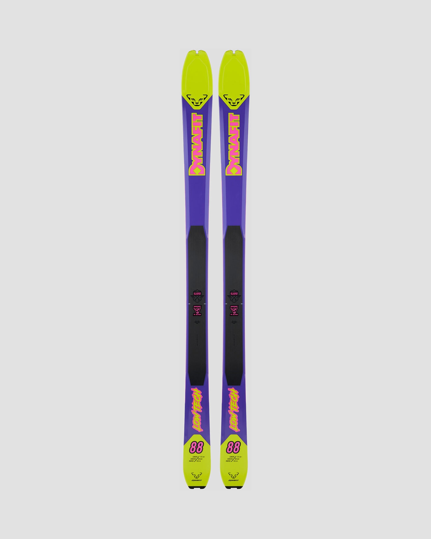 Le ski Dynafit Low Tech 88 offre des performances convaincantes en terrain alpin et dans toutes les conditions de neige en tant que ski de randonnée Speed léger, polyvalent et performant. La paire de skis ne pèse que 2290 g grammes (pour une longueur de 165 cm) avec une taille de 88 mm, ce qui en fait les skis polyvalents les plus légers de la marque DYNAFIT.