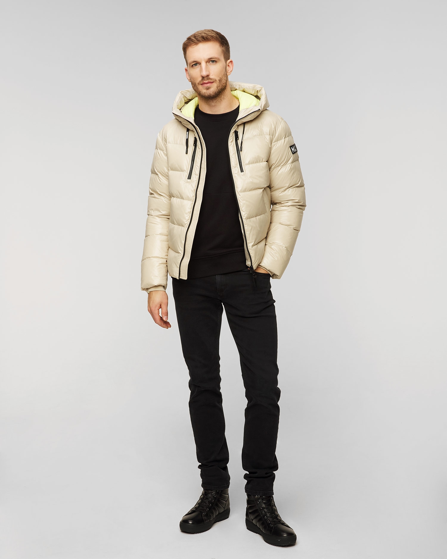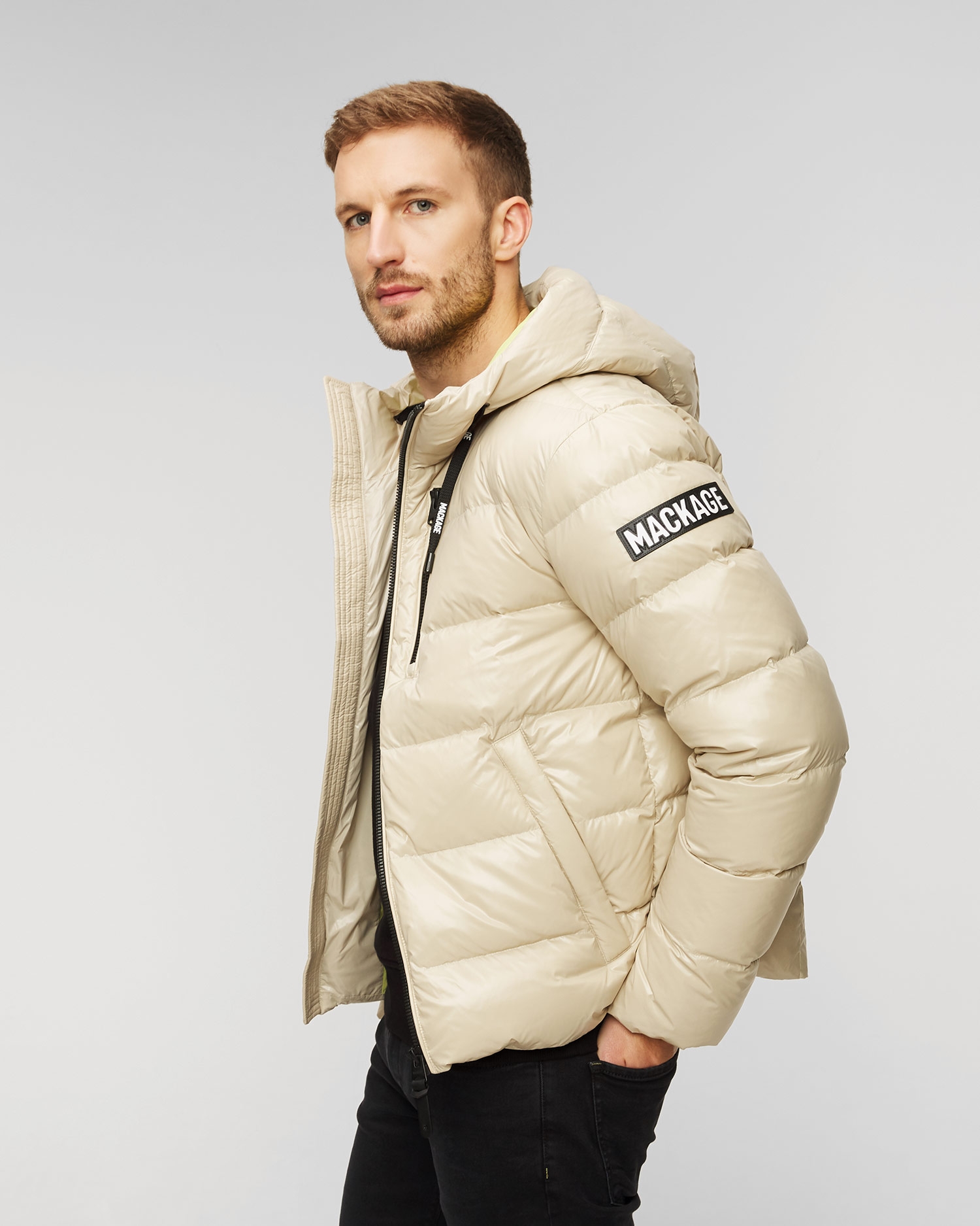 La doudoune beige pour homme Mackage Victor est une option ultra-légère pour la saison hivernale qui s'associera avec succès à de nombreuses tenues, en apportant confort et look à la mode. Elle est fabriquée en nylon matelassé et résistant avec un revêtement brillant qui vous protégera efficacement du vent et de l'humidité. Une veste avec un rembourrage recyclé qui vous gardera parfaitement au chaud, prenant soin de votre confort thermique lors des journées froides. Veste à coupe régulière avec fermeture à glissière sur le devant. Avec un ourlet caché et ajustable cousu en bas pour un meilleur ajustement. Dotée d'une capuche généreuse avec visière tempête réglable. Modèle avec deux poches frontales verticales et deux poches latérales isolées, ainsi qu'une poche intérieure supplémentaire. Veste avec poignets tempête côtelés, terminés par un ourlet côtelés pour une protection supplémentaire contre le froid. Écusson de marque sur la manche gauche.