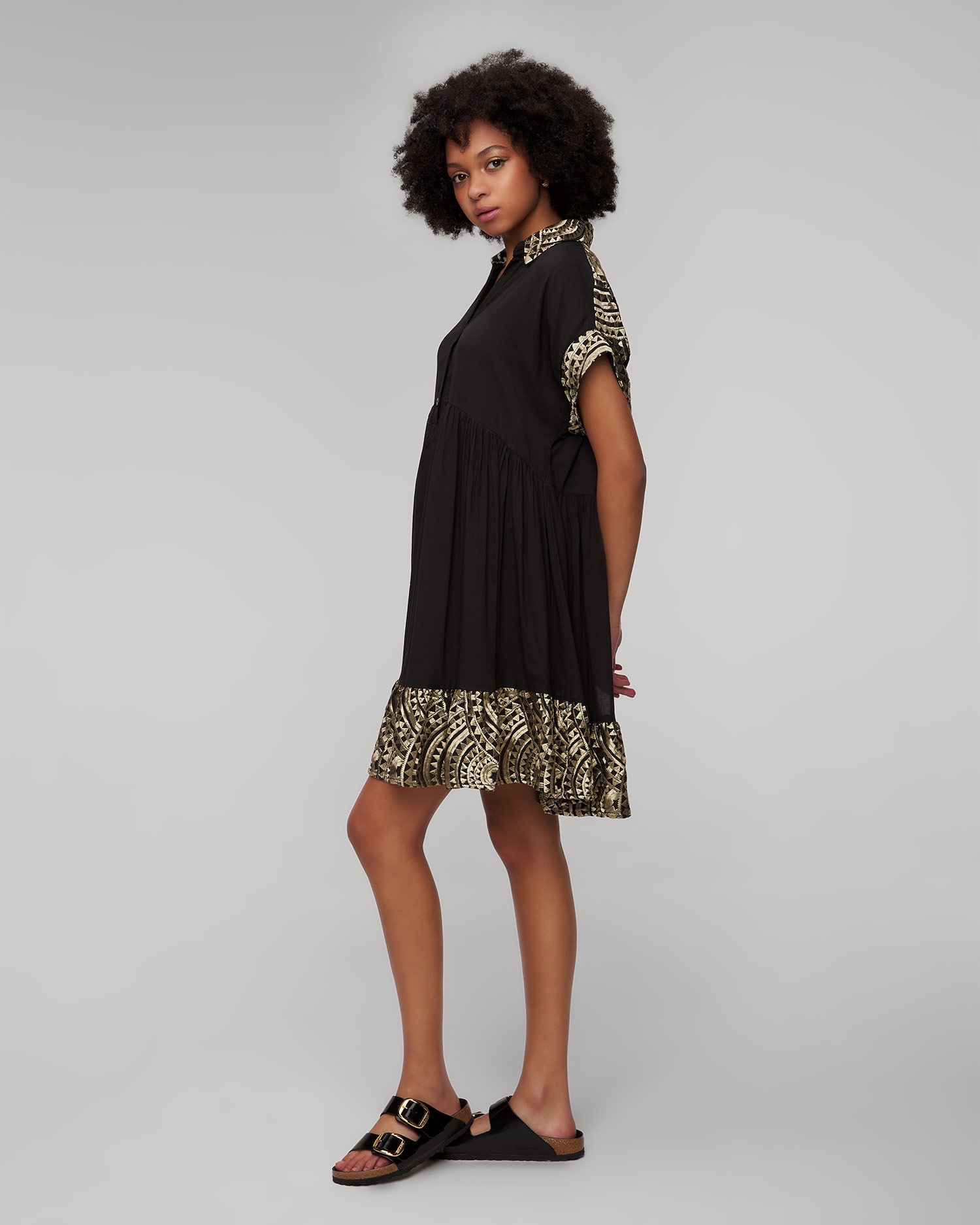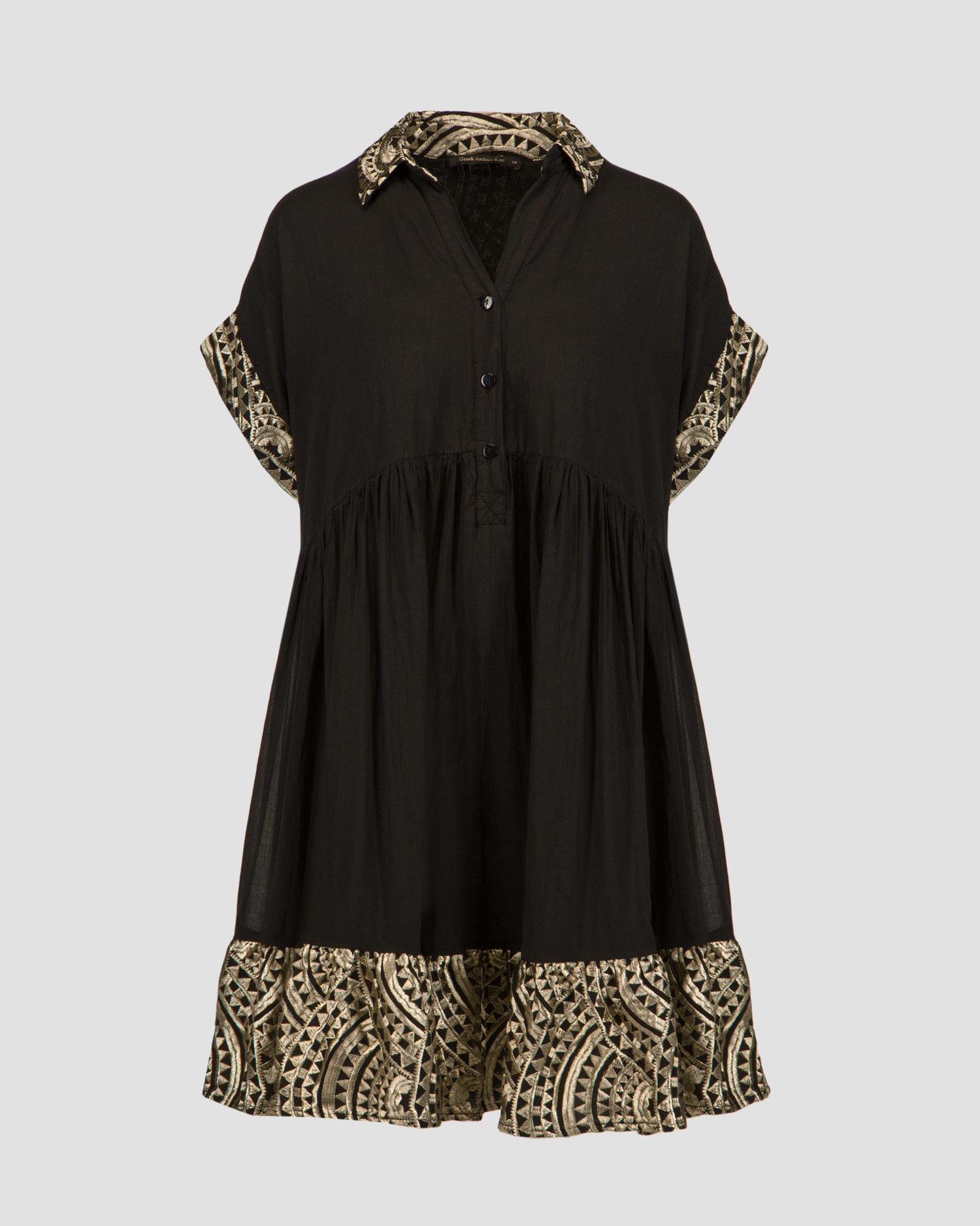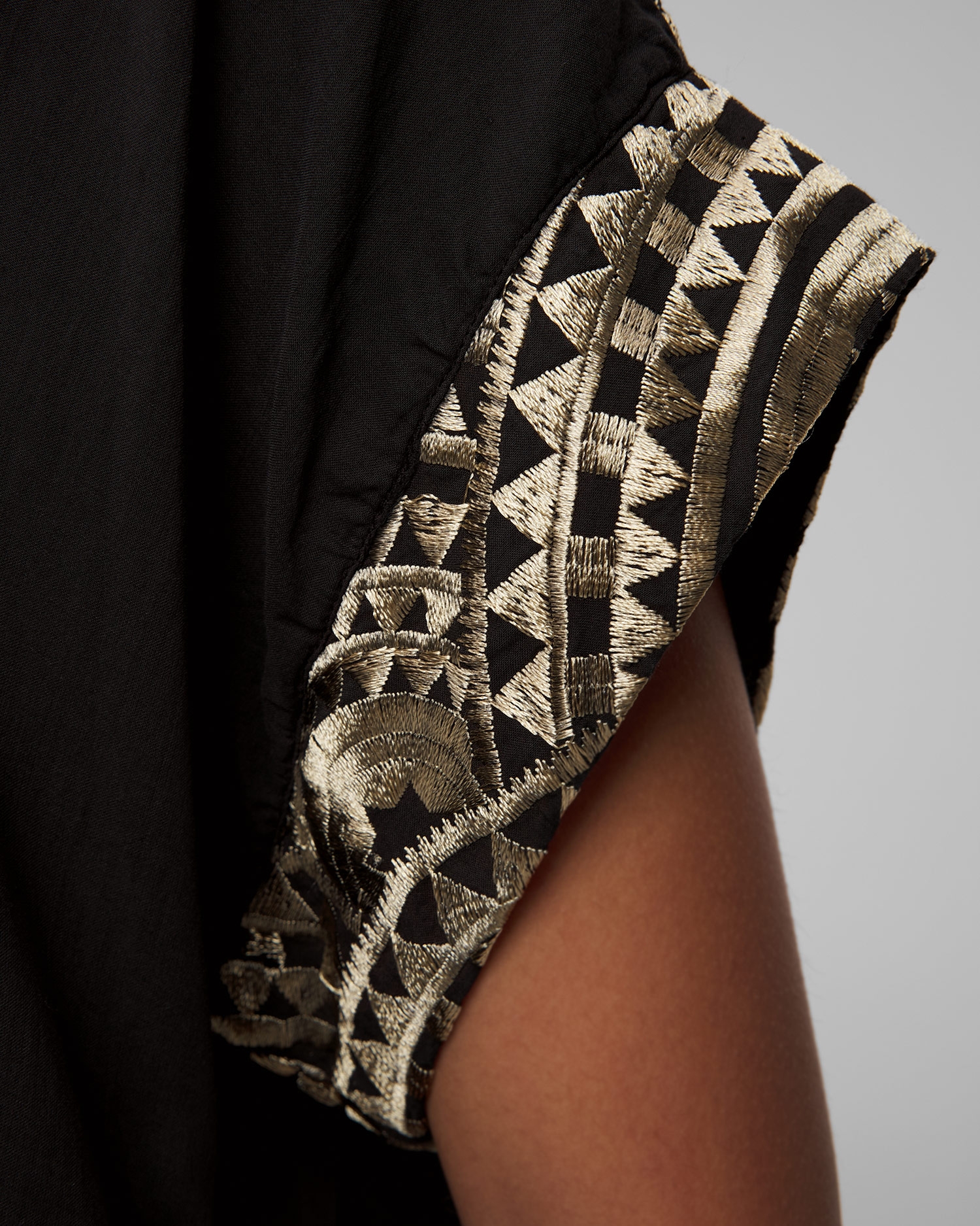 La robe noire pour femmes Kori est une proposition dans laquelle vous vous sentirez extrêmement élégante et décontractée. Elle se distingue par ses élégants ornements brodés à la main, inspirés de la culture ancienne. Elle sera parfaite pour les promenades en vacances et comme élément d'un look urbain lors d'une chaude journée d'été. La robe est en coton extrêmement doux et agréable au toucher. Sa coupe décontractée assure un maximum de confort sans entraver les mouvements.