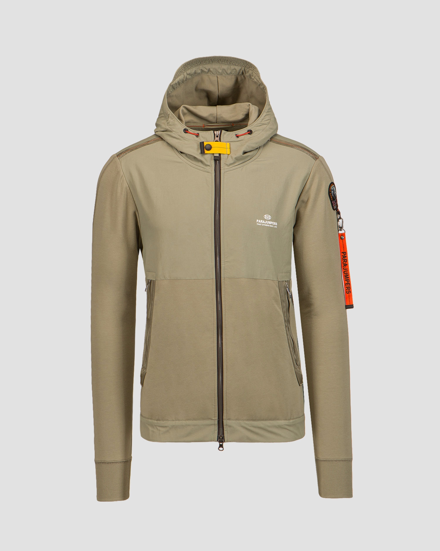 Le sweat-shirt vert pour hommes Parajumpers Trident est une proposition confortable par temps froid, parfaite pour un style urbain. Fabriqué en coton de haute qualité avec une respirabilité naturelle pour le confort pendant les activités quotidiennes. Sweat à coupe régulière avec capuche à visière, réglable par cordons. Le design classique, varié avec des inserts en tissu lisse qui ajoutent une touche d'originalité. Deux poches latérales zippées sur le devant. Le bas du sweat est terminé par un élastique cousu pour un meilleur ajustement. Le modèle est décoré de détails de marque sous la forme d'un imprimé sur la poitrine et d'un patch avec le porte-clés emblématique sur la manche gauche.