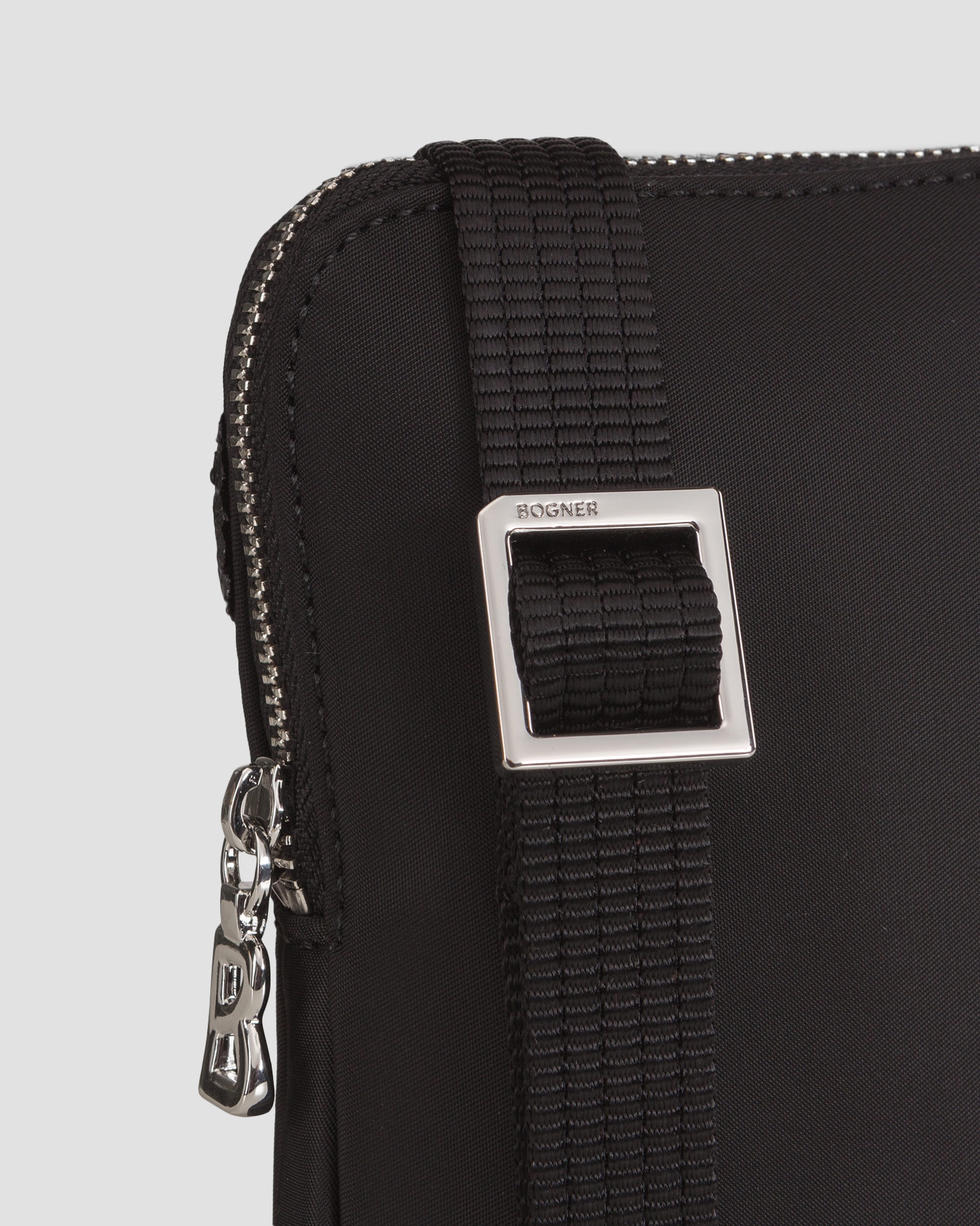 Etui BOGNER JOHANNA dans le style d'un petit sac messager. Fabriqué en nylon mat. Fermeture par une fermeture éclair décorative. Bandoulière amovible et réglable. Logo décoratif sur le devant.