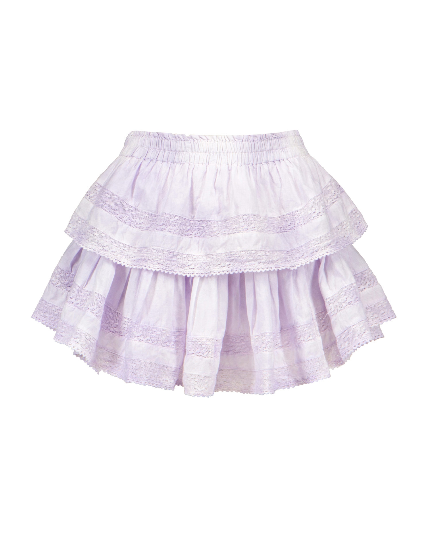 Jupe LOVESHACKFANCY RUFFLE MINI inspirée du style vintage à coupe extrêmement féminine. En viscose teinte à la main. Les volants superposés, finis avec de la dentelle brodée, ajoutent de la légèreté. Ceinture élastique pour un meilleur ajustement. La doublure augmente le confort de port.