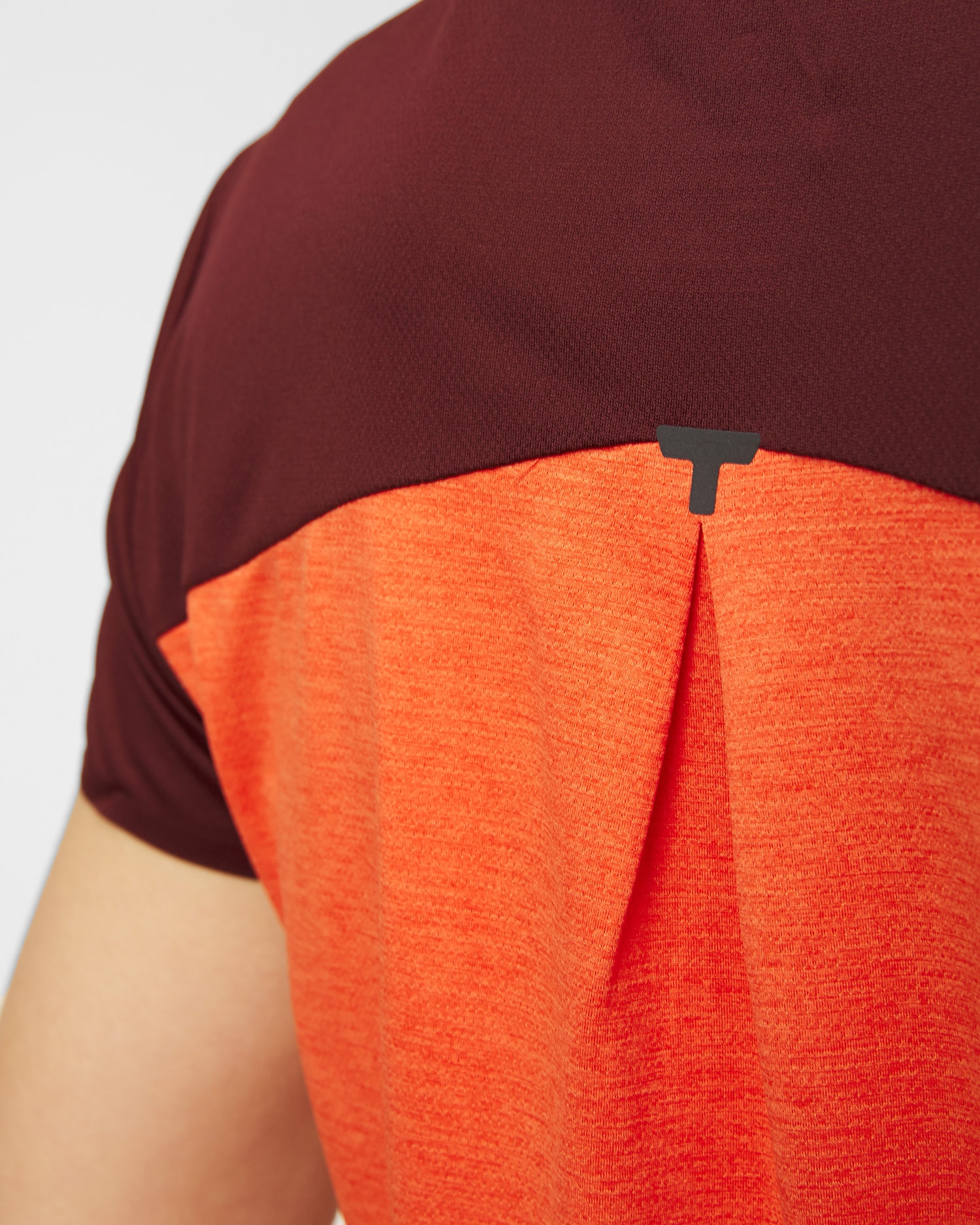 Fabriqué en tissu technique ultra-léger. Les propriétés de séchage rapide et la structure aérée apporteront fraîcheur et confort lors des journées chaudes. Les coutures plates minimisent le risque d'irritation. Le dos est fait d'un tissu contrastant avec un tissage différent.
