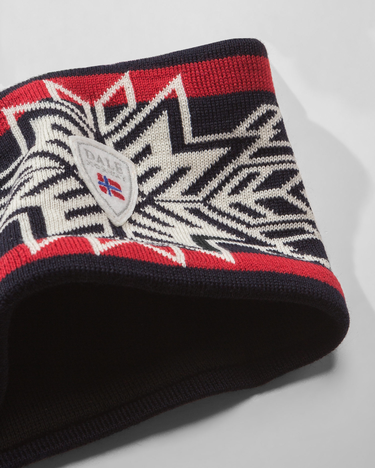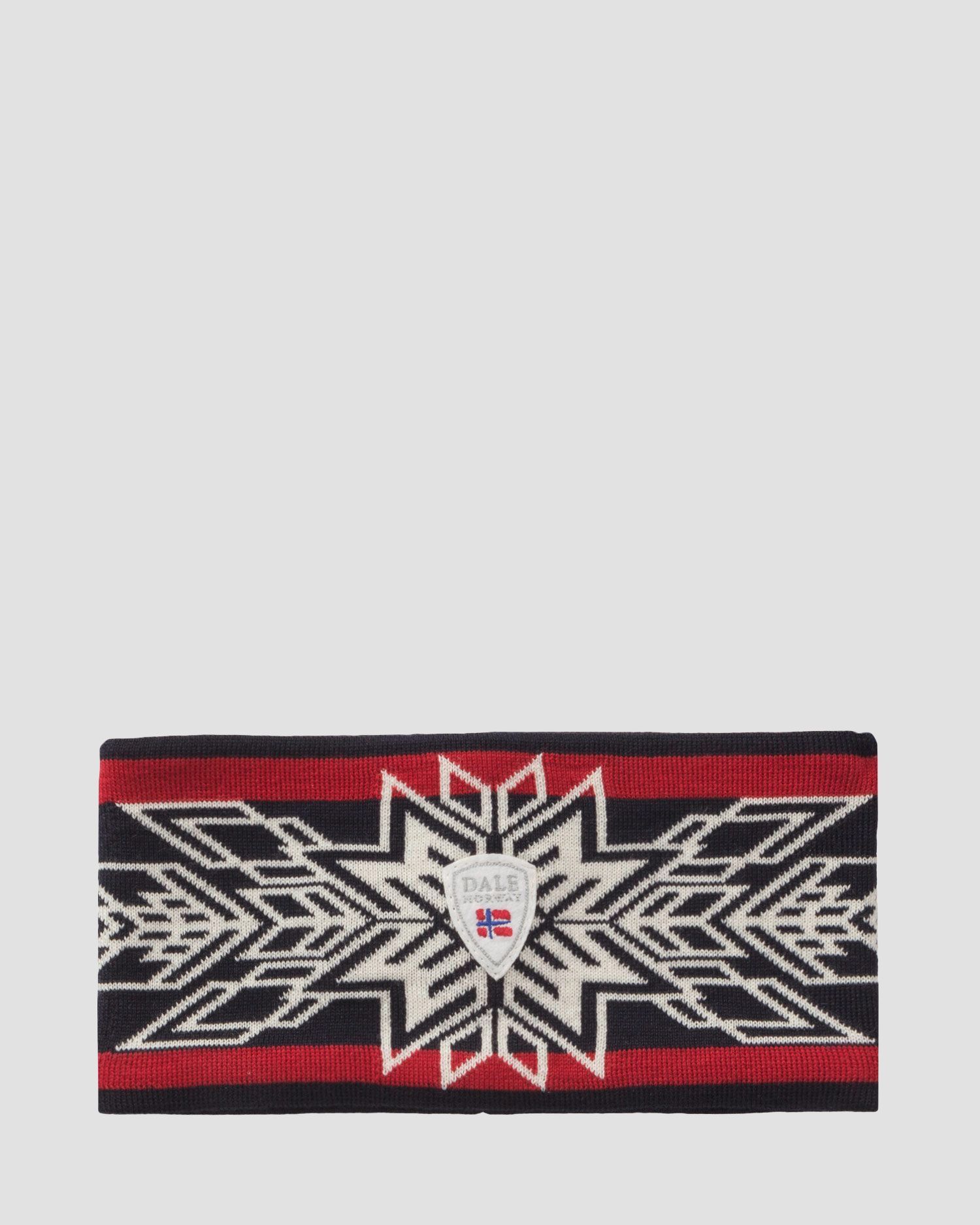 La benda DALE OF NORWAY OL SPIRIT decorata con il tradizionale motivo norvegese della rosa di otto petali. Il modello della collezione ispirata allo spirito delle Olimpiadi. La toppa con il logo del marchio sulla parte anteriore. La benda fatta in lana di merino morbida - calda, traspirante e che non provoca il prurito.