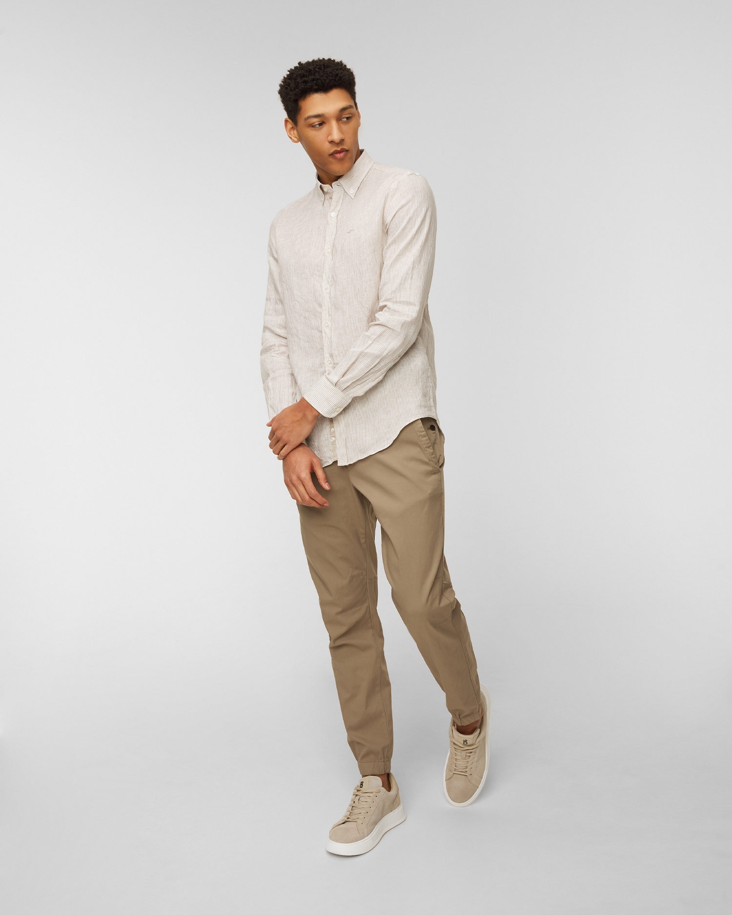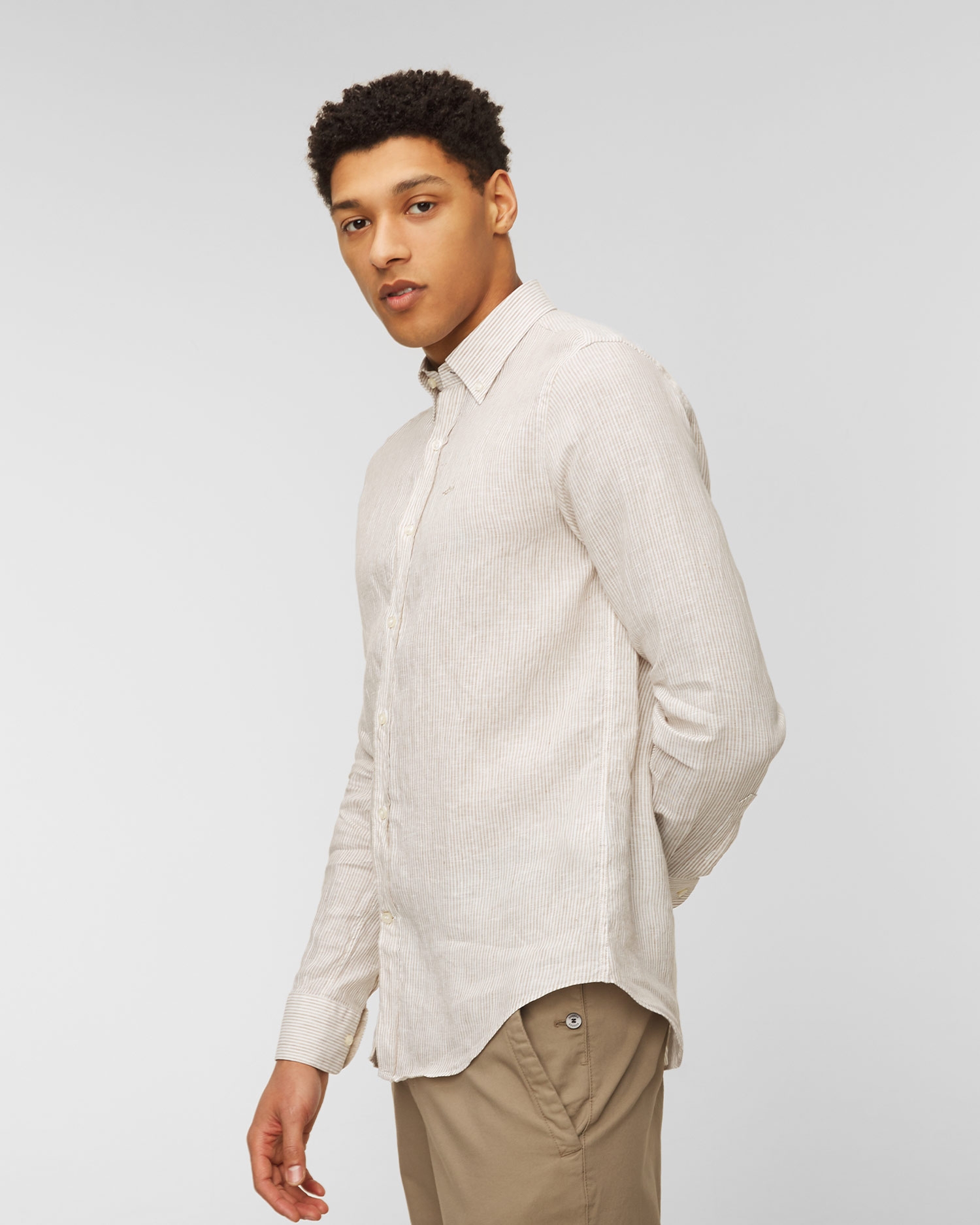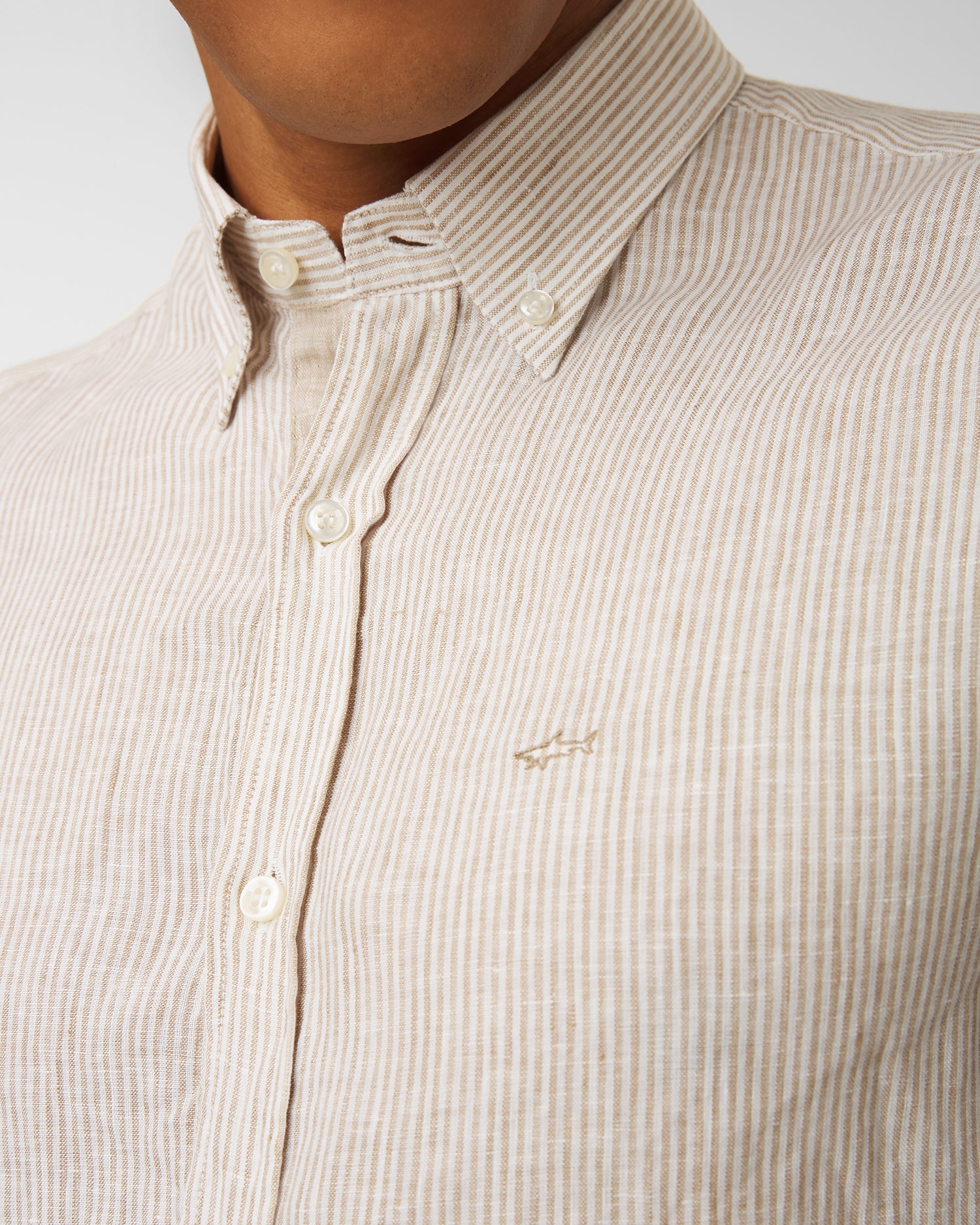 La camicia di lino Paul&Shark sarà ideale per le giornate calde quando non vuoi rinunciare all’eleganza ed allo stesso tempo vuoi garantirti il comfort. Fatta in lino naturale. Con i bottoni perlati. Il colletto del tipo button down sottolinea il carattere casual della camicia. Sul petto ricamato il logo minimalista del marchio.