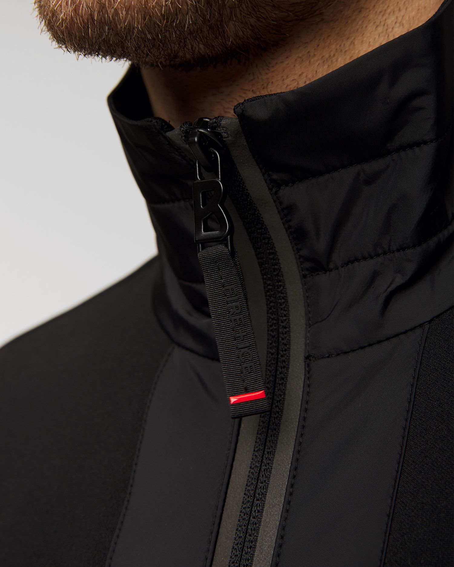 La felpa nera ibrida da uomo BOGNER FIRE+ICE Bjoerk è una proposta confortevole per le attività invernali. Il tessuto Power Stretch la rende comoda e funzionale. Gli inserti lisci fatti in nylon proveniente dal riciclaggio. Il colletto alto, la cerniera a doppio cursore e le tasche laterali completano il capo. L'orlo regolabile in basso offre la finitura confortevole.