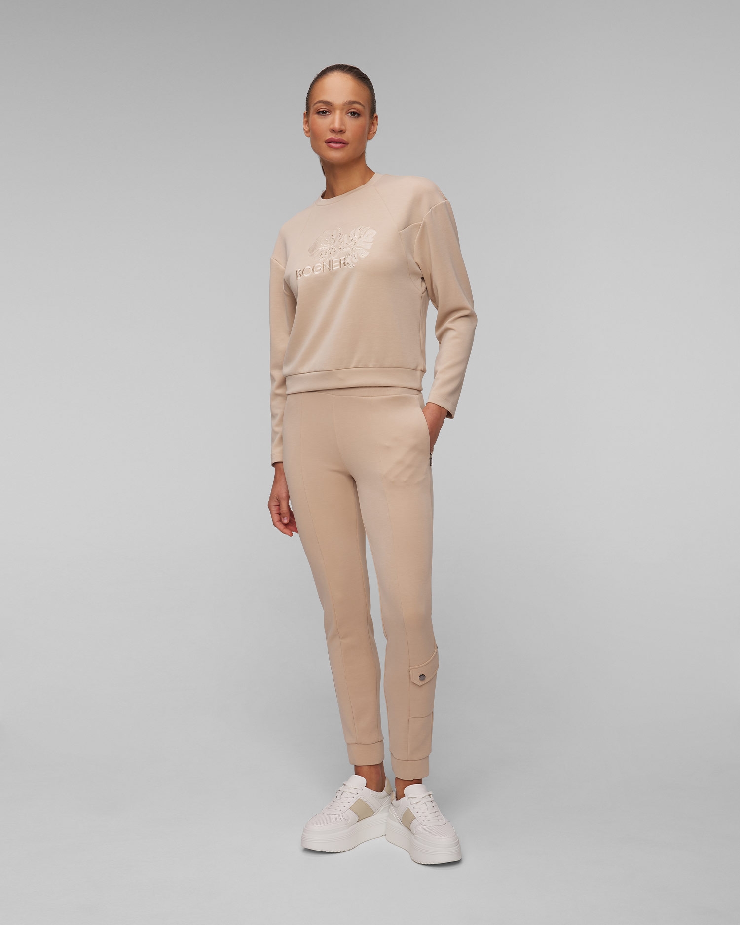 La felpa BOGNER Zuna garantisce il comfort ed è ideale come elemento del look disinvolto. Fatta in miscuglio elastico con modal, piacevole al tatto ed incredibilmente morbido. La comodità viene aumentata dalle maniche raglan. Sulla parte anteriore il ricamo decorativo con la scritta BOGNER.