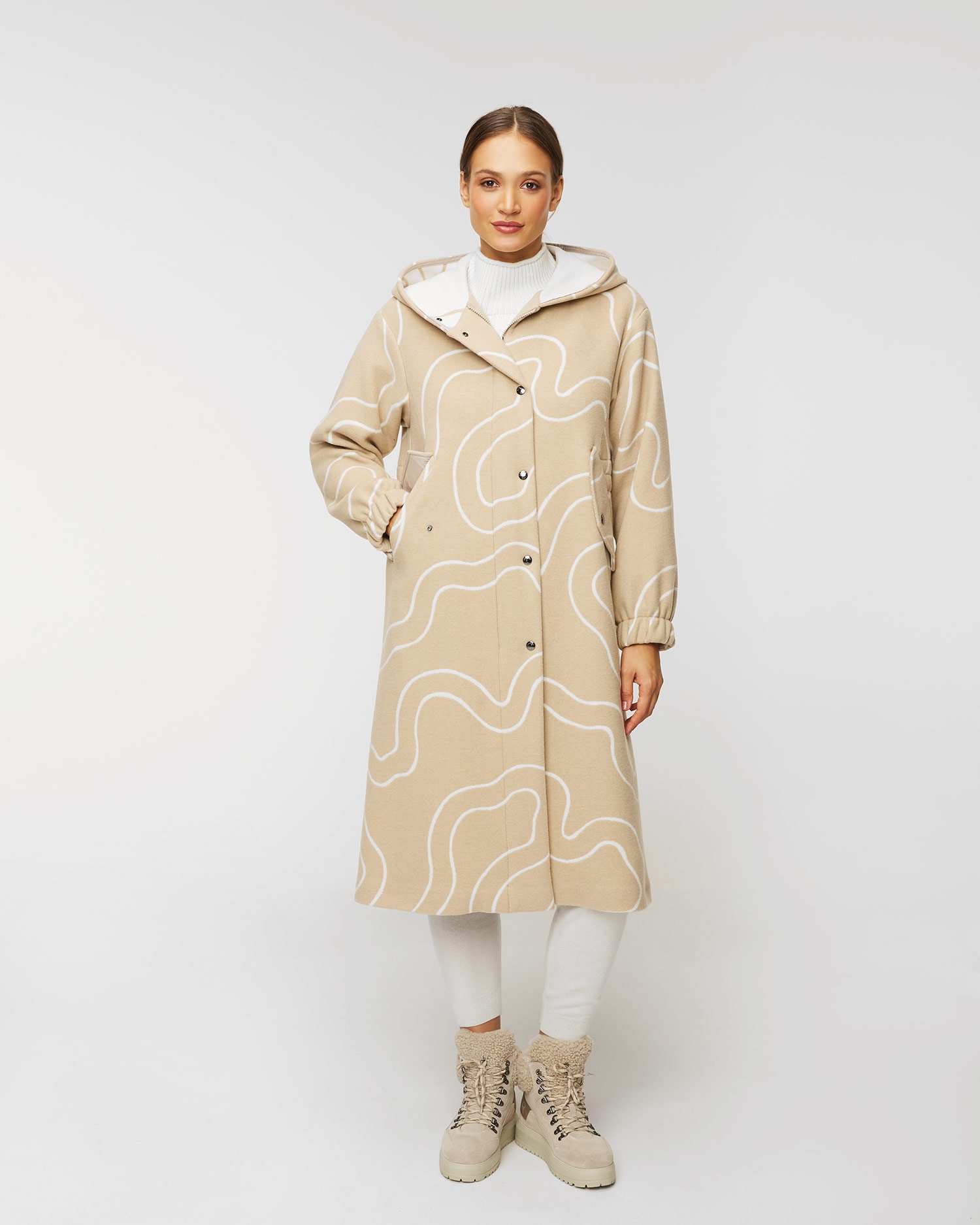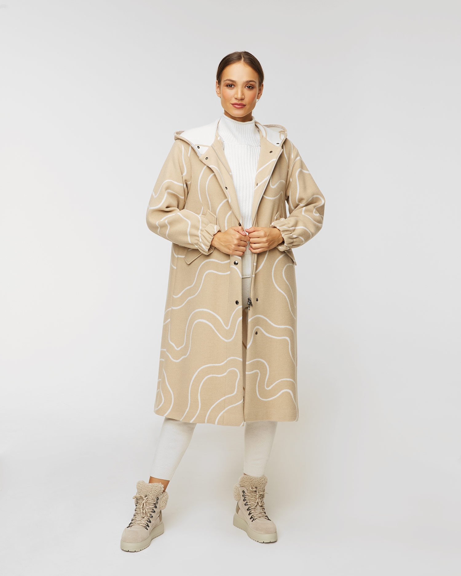Il cappotto in lana BOGNER JANNA dal taglio dritto ed oversize attira attenzione con il disegno jacquard. Viene completato dalle tasche con le patte e dal cappuccio morbido. Questo modello esclusivo è fatto in miscuglio di lana italiana di alta qualità e di viscosa che garantisce la morbidezza. Con l’aiuto di cordoncino in vita è possibile sottolineare la silhouette femminile. Con la cerniera pratica a doppio cursore e con i bottoni a pressione.