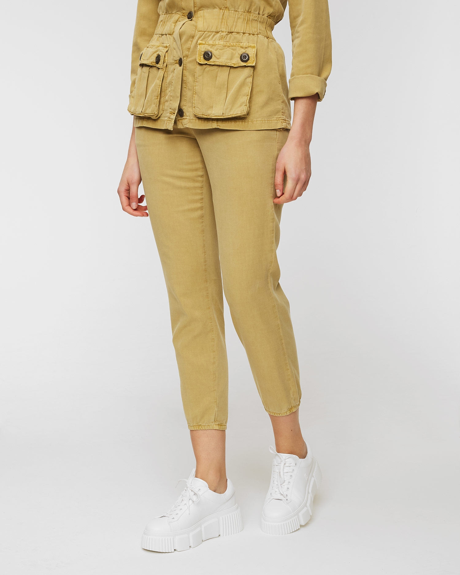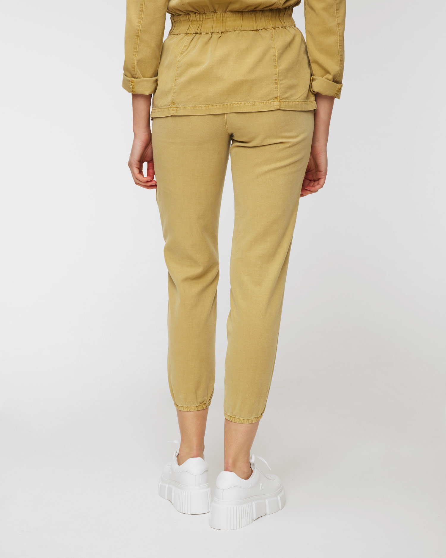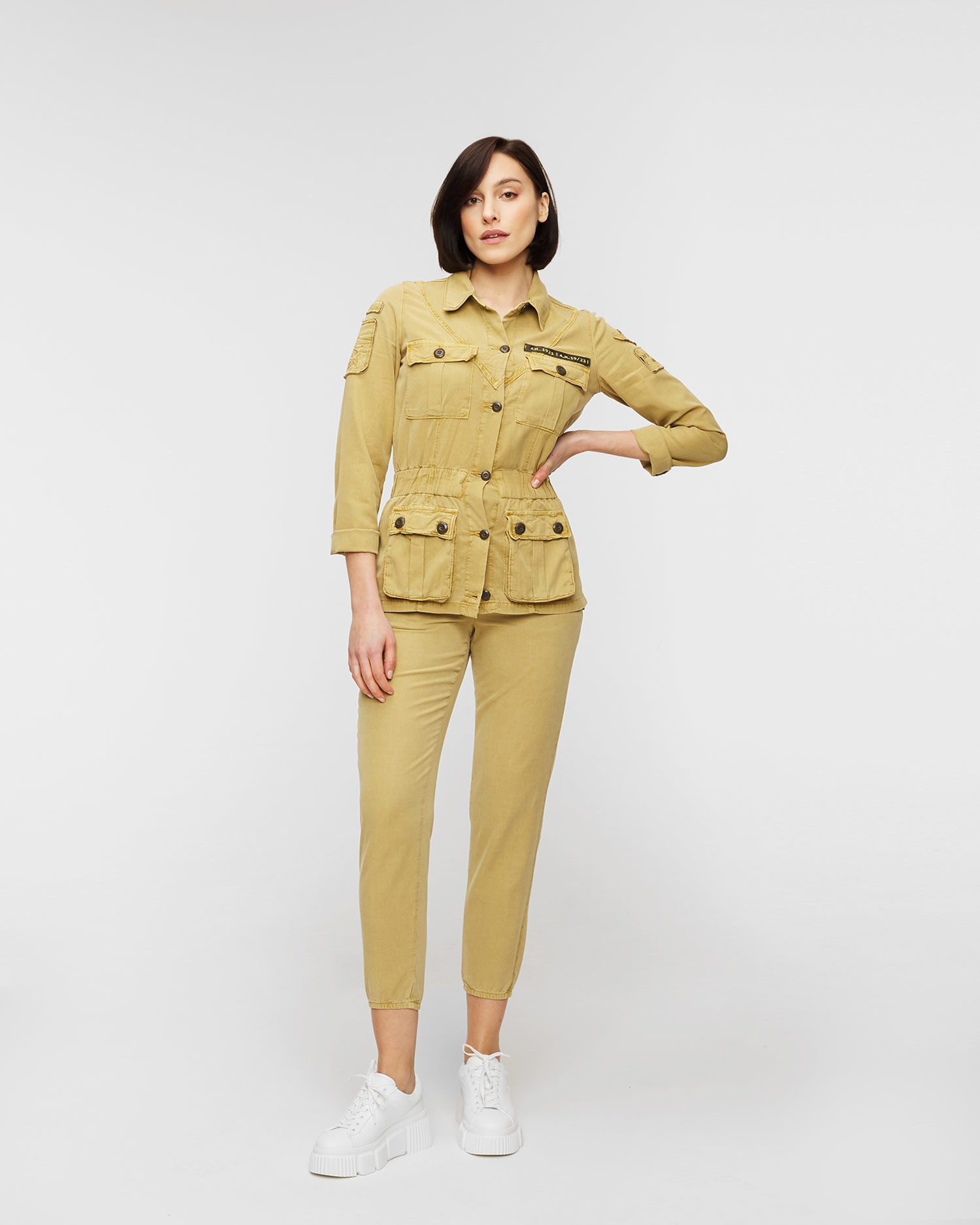 I pantaloni Aeronautica Militare saranno ideali come una soluzione comoda per tutti i giorni. Fatti in miscuglio di alta qualità di lyocell e cotone. Il tessuto morbido si caratterizza per le naturali proprietà di traspirabilità e di assorbimento dell’umidità, grazie alle quali garantirà il comfort d’utilizzo. I pantaloni dal taglio regolare con la vita elastica. Si adatteranno alla silhouette prendendosi cura della libertà di movimenti. Il modello di colore liscio, decorato con le applicazioni firmate e militari.