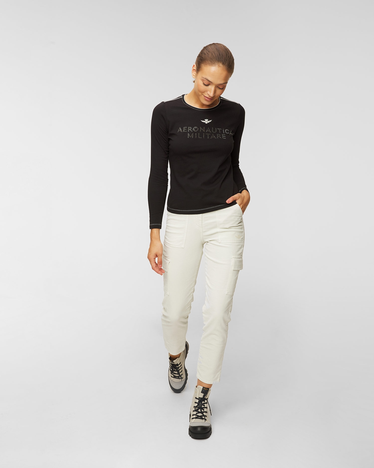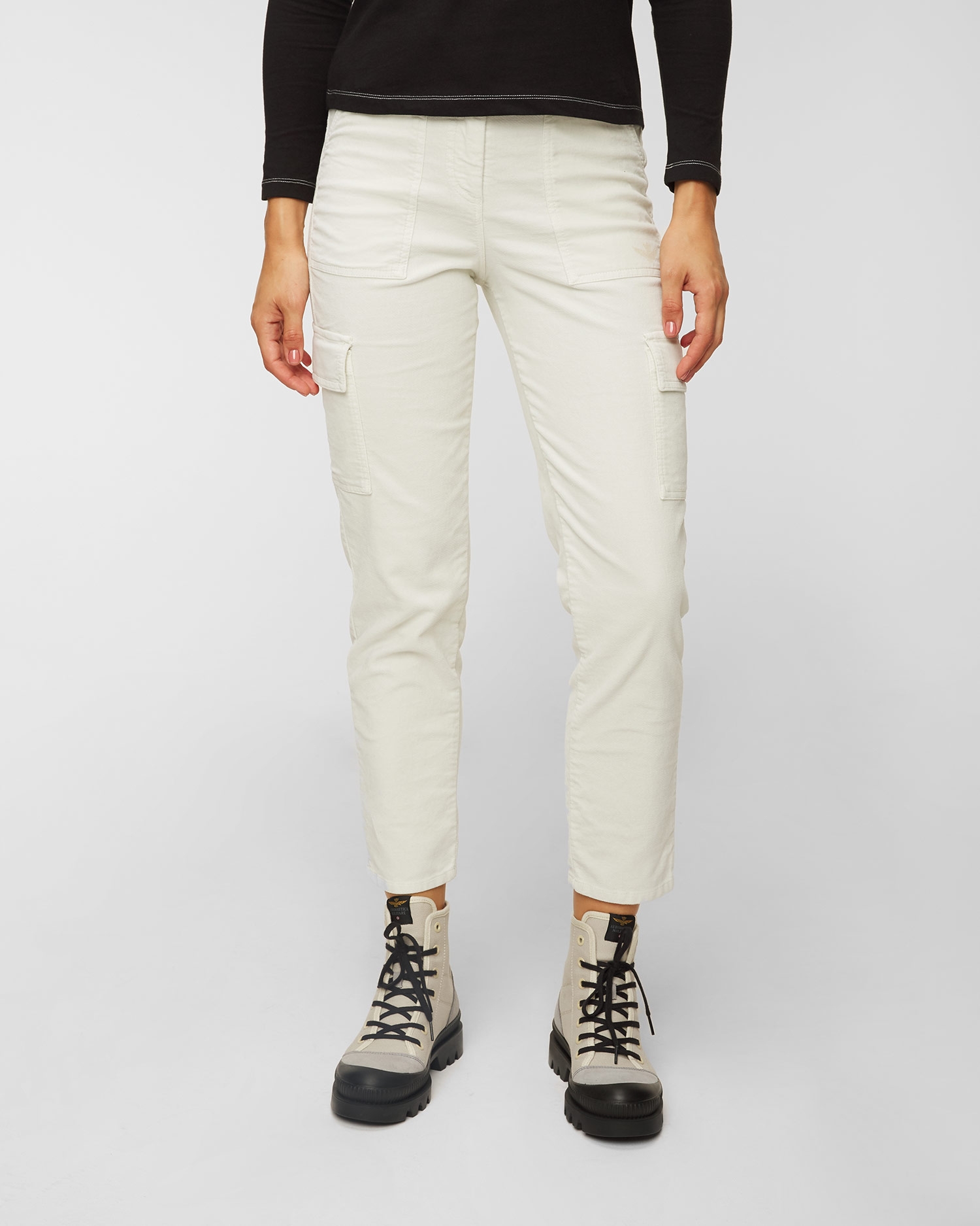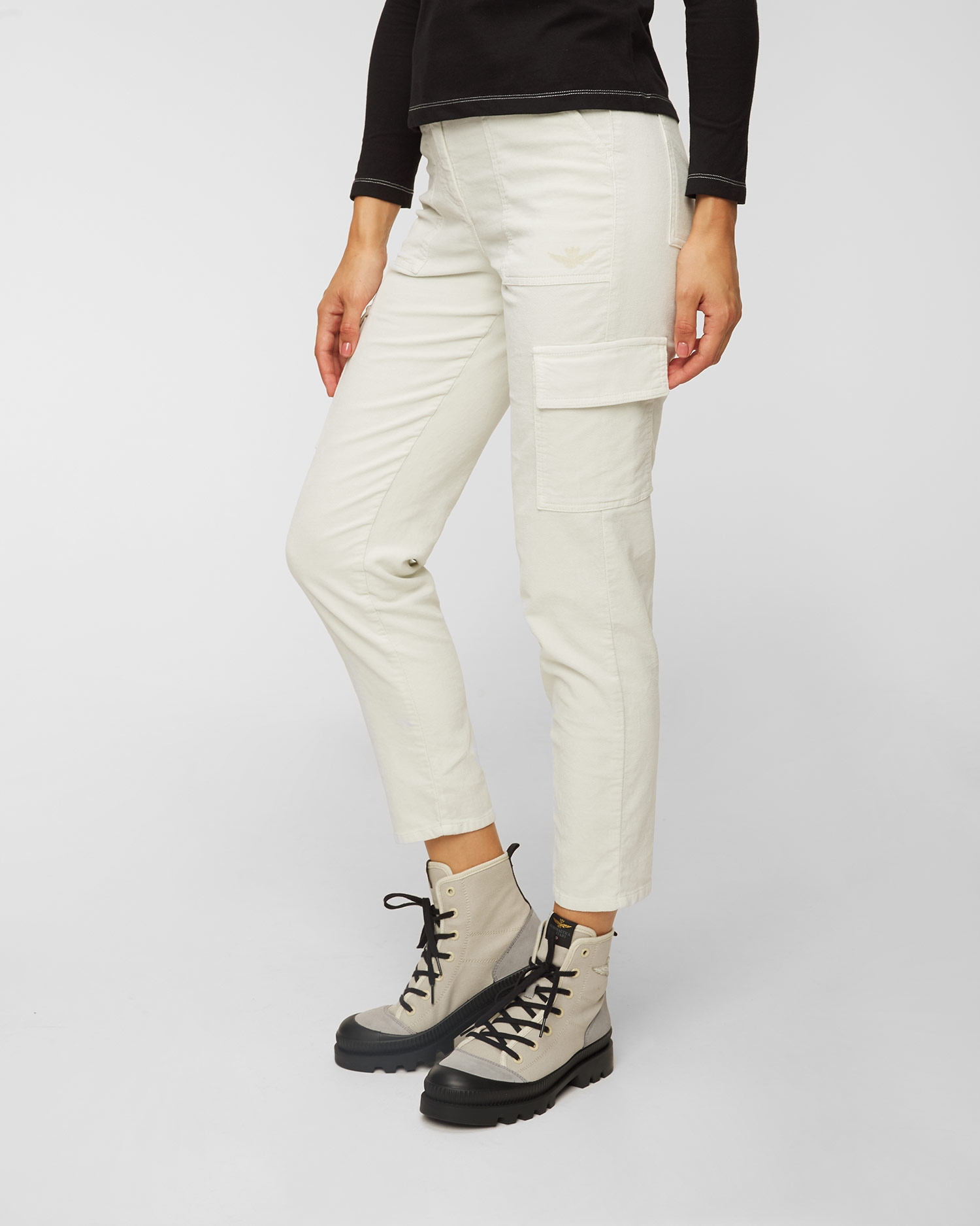 I pantaloni cargo AERONAUTICA MILITARE sono una proposta ideale per le donne che nei look per tutti i giorni puntano sulla comodità e sull’originalità. Completeranno i look disinvolti per tutti i giorni, conferendogli l’accento militare. Fatti in cotone di alta qualità, dalla finitura delicata e satinata. Il tessuto con l’aggiunta di elastan si adatta alla silhouette e si prende cura del comfort e la libertà di movimenti. Con il bottone e la cerniera. Due tasche laterali, due tasche posteriori. Le gambe della lunghezza 7/8 decorate con le tasche cargo. Al lato sinistro il logo del marchio ricamato. I pantaloni attirano attenzione con l’applicazione firmata lungo la vita.