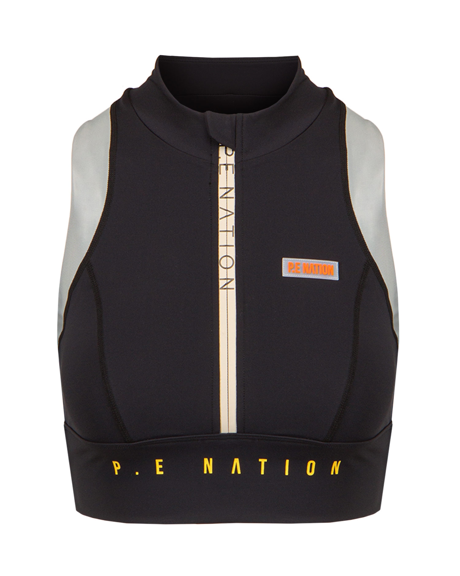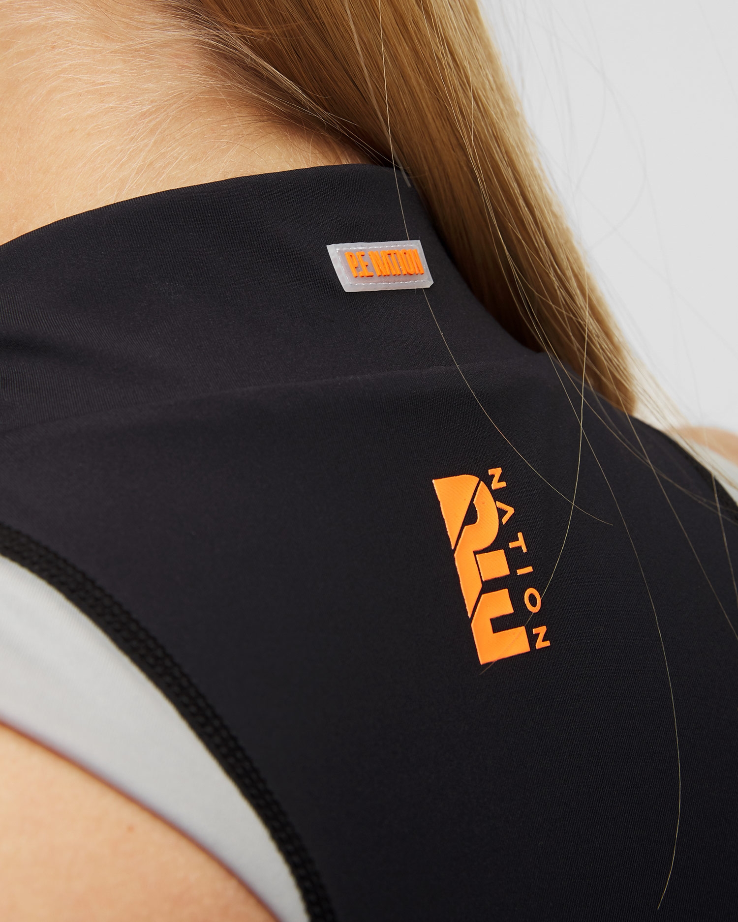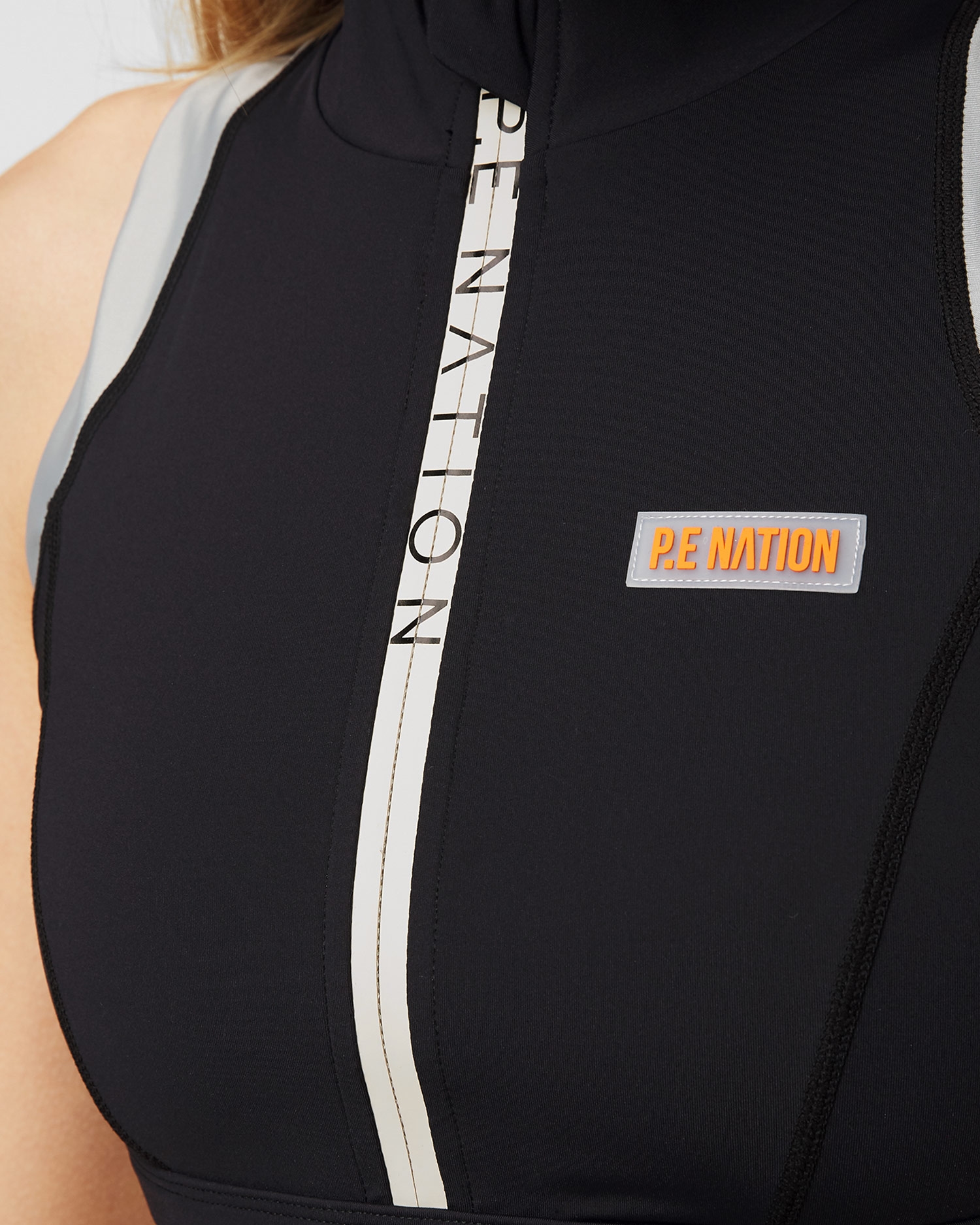 Il top da donna P.E NATION ROTATION SPORTS BRA è una proposta per le donne attive che anche durante l’allenamento vogliono sentirsi belle ed uniche. Fatto in un cotone elastico e traspirante, proveniente parzialmente dal riciclaggio. Il contenuto aggiuntivo di elastan garantisce la perfetta vestibilità. Un altro vantaggio del tessuto è l’alta igroscopicità che permette di assorbire perfettamente l’umidità ed eliminarla. Il top nero con gli inserti interessanti e con il mezzo collo alto. La parte inferiore rifinita con l’elastico largo. Il logo del marchio sulla parte anteriore e sulla nuca. La cerniera firmata constrastante.