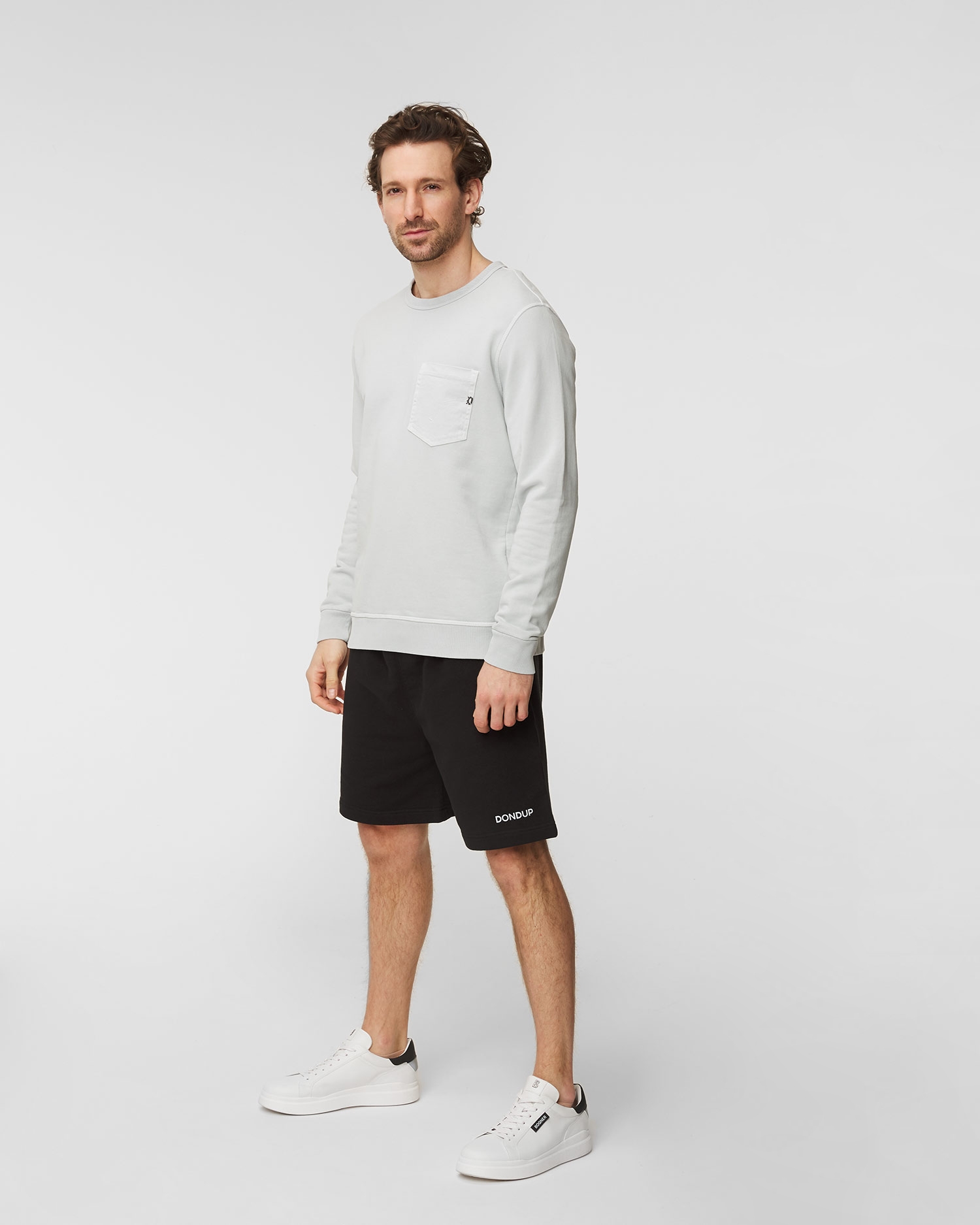 Bluza DONDUP este un model deosebit de comod, produs în Italia. Va fi excelentă ca element al unei ținute lejere, oferind un confort deplin. Fabricată din bumbac moale, de înaltă calitate și plăcut la atingere. Croială clasică ce se potrivește pe corp. Decolteu rotund. În partea din față un buzunar decorat cu logo-ul brandului. Mânecile și partea inferioară sunt terminate cu bordură striată.