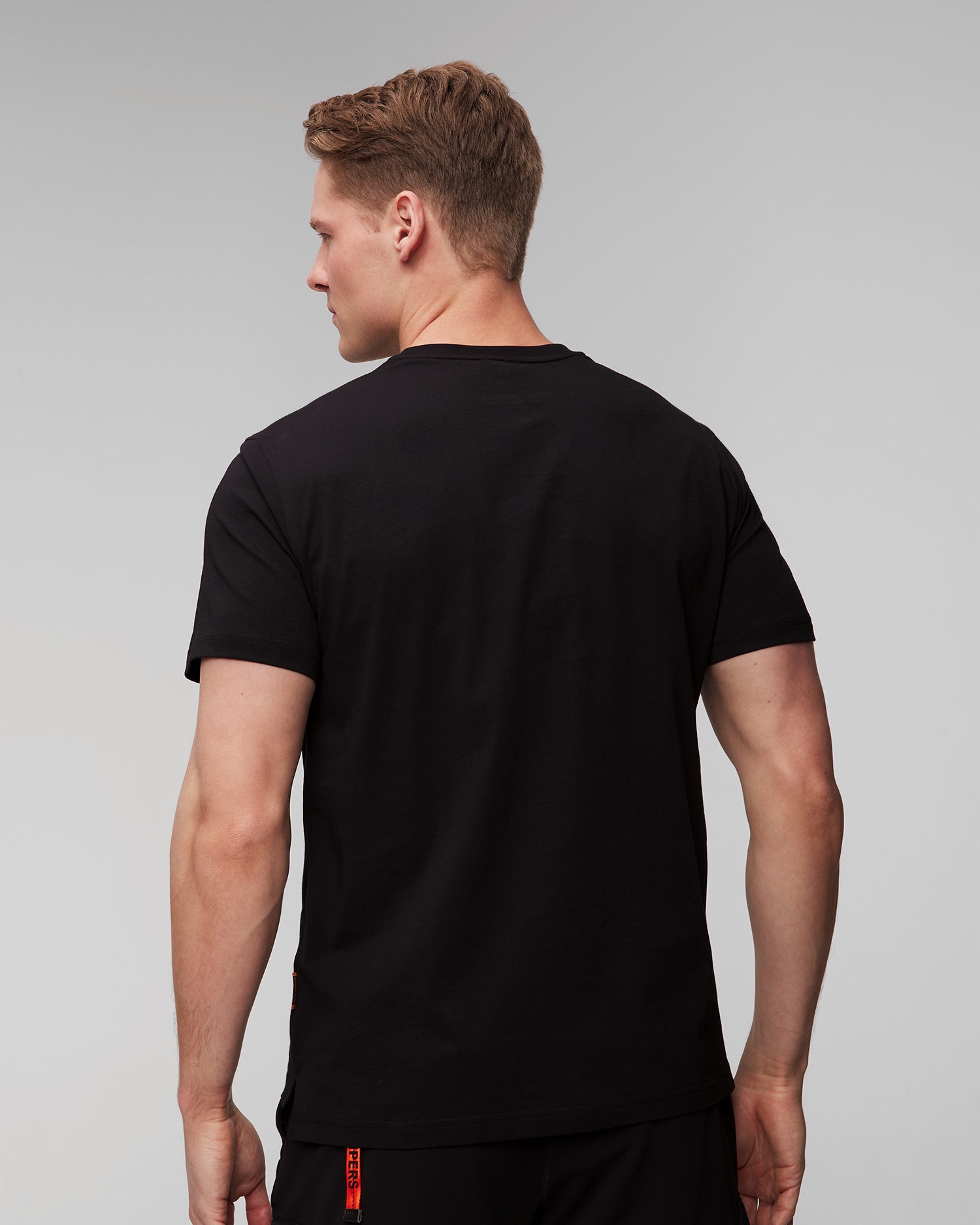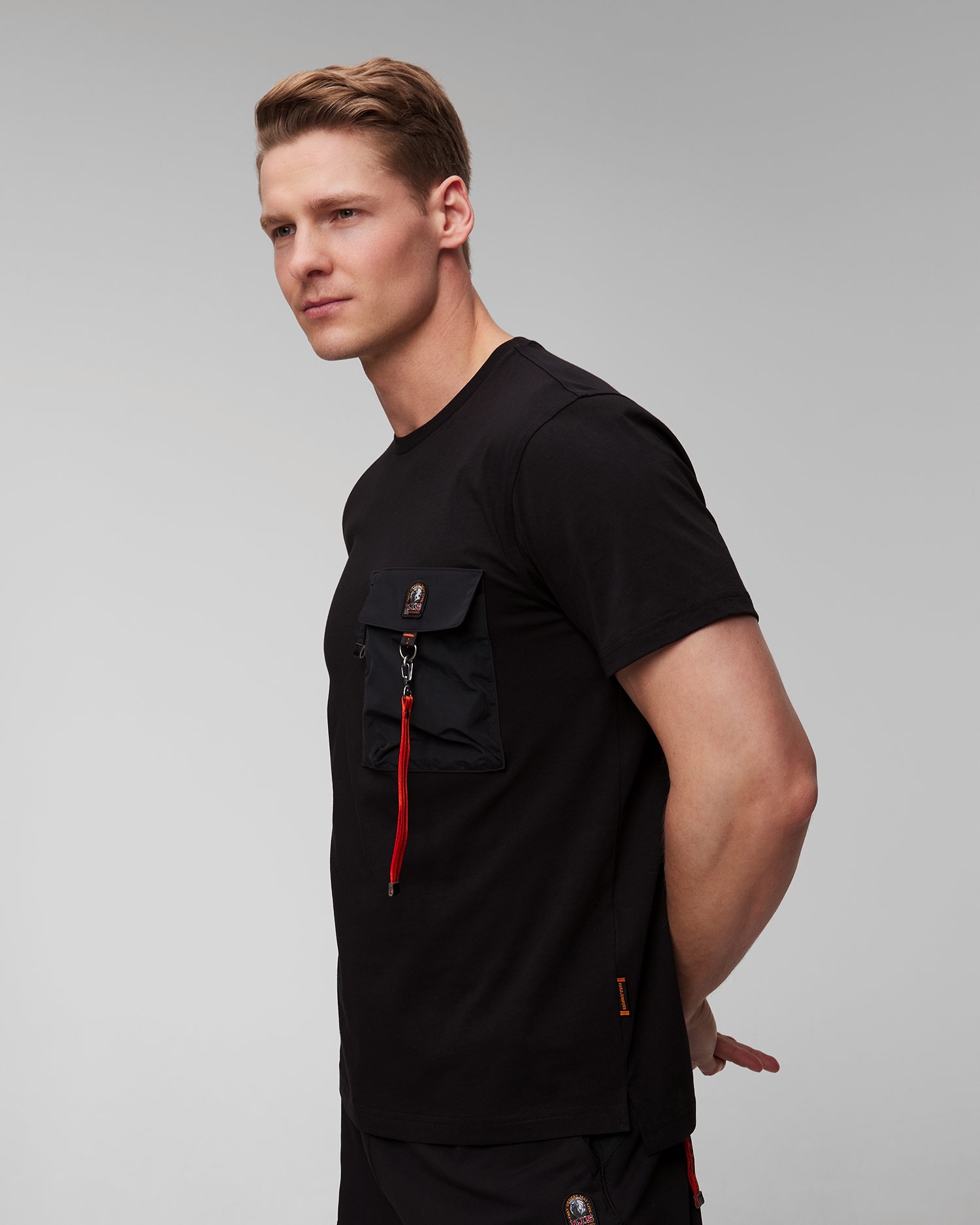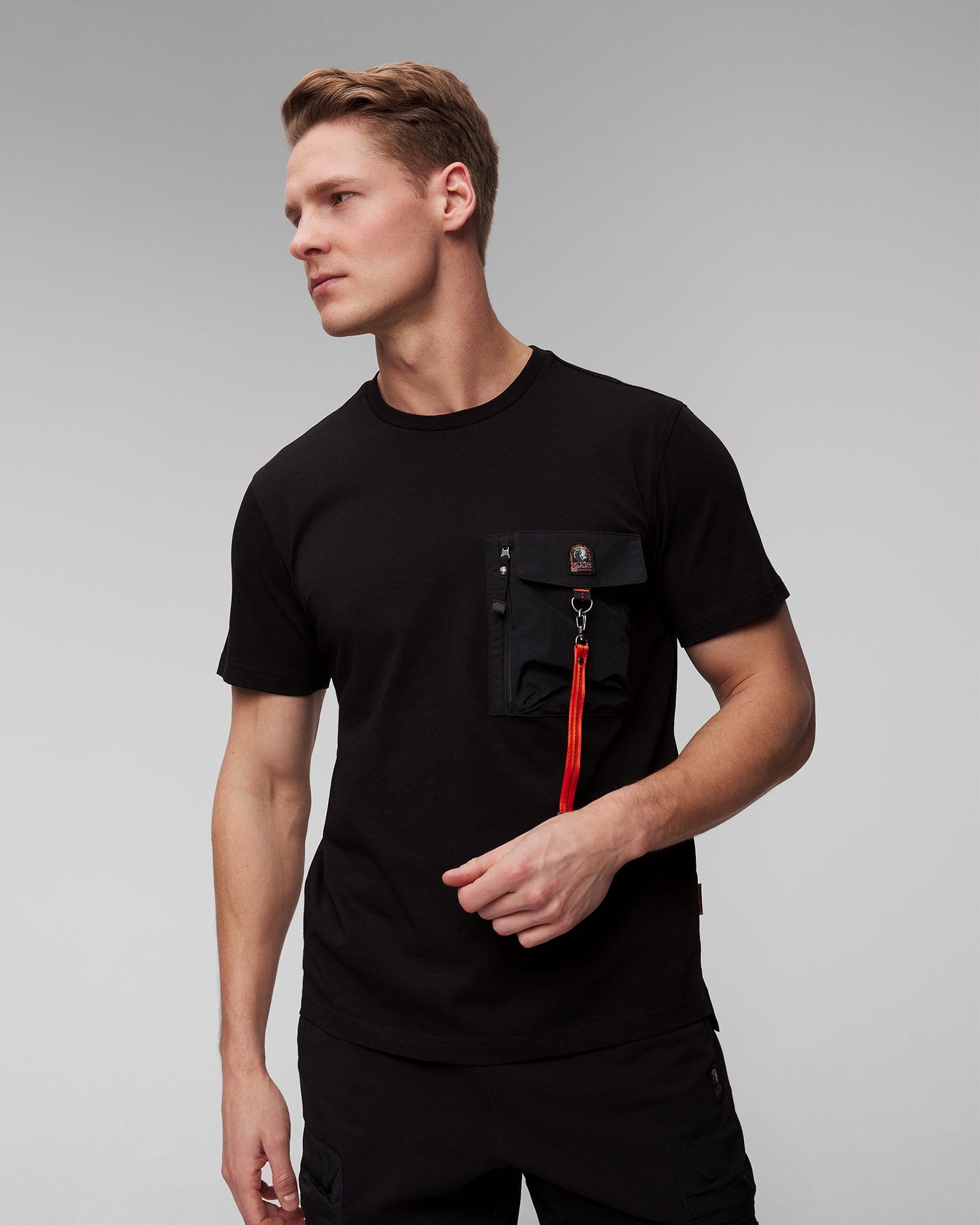 Tricoul negru pentru bărbați Parajumpers Mojave are un design de inspirație militară. Este confecționat din bumbac moale, plăcut pentru piele, astfel încât va avea grijă de confortul tău și te va menține confortabil în timpul activităților zilnice. Tricou cu decolteu rotund și croială regulată. Caracteristica care atrage atenția la acest tricou este buzunarul din față, realizat din țesătură de nailon, cu un plasture și fermoar. Buzunarul prezintă un plasture decorativ cu logo-ul mărcii și un breloc iconic într-o culoare contrastantă.