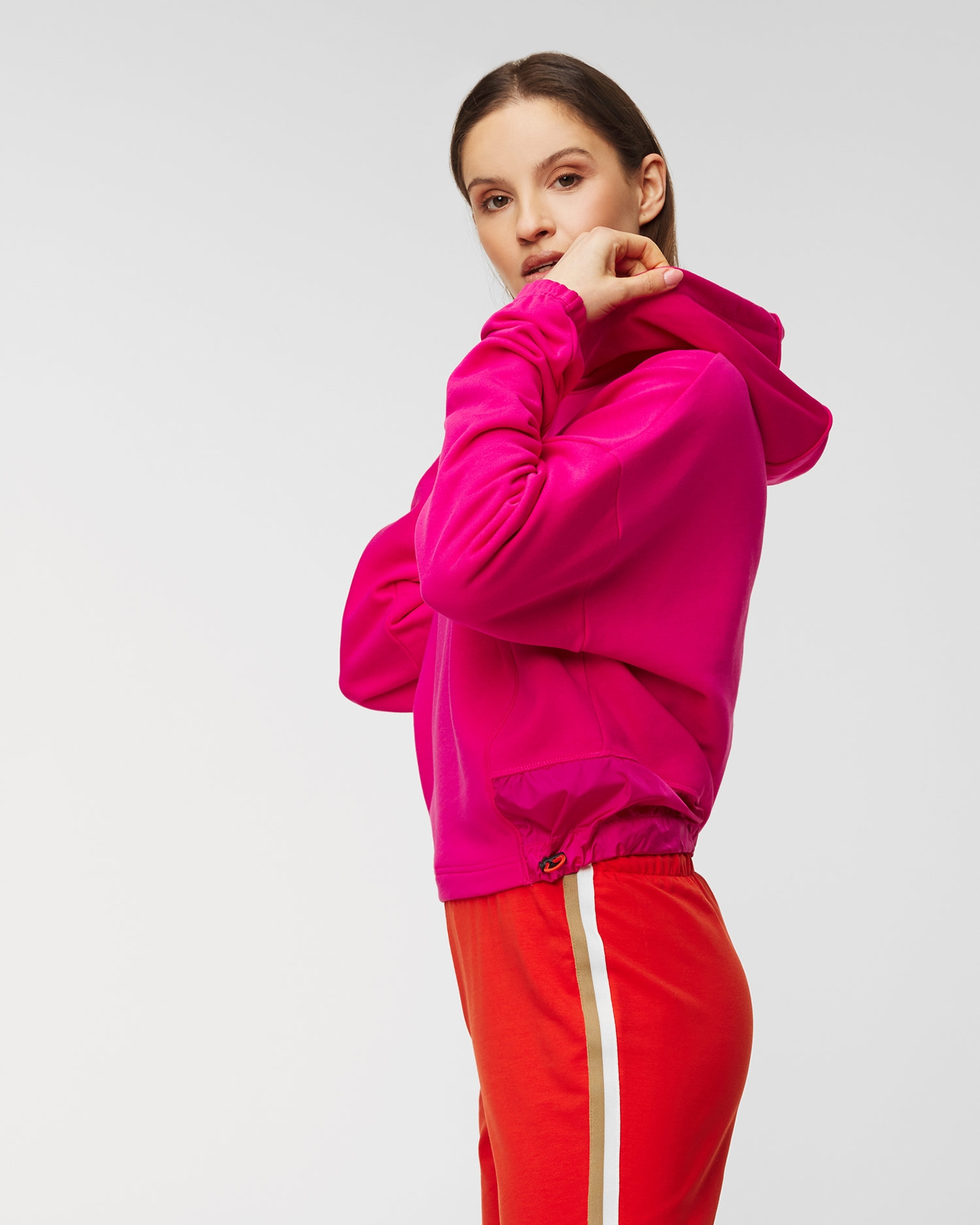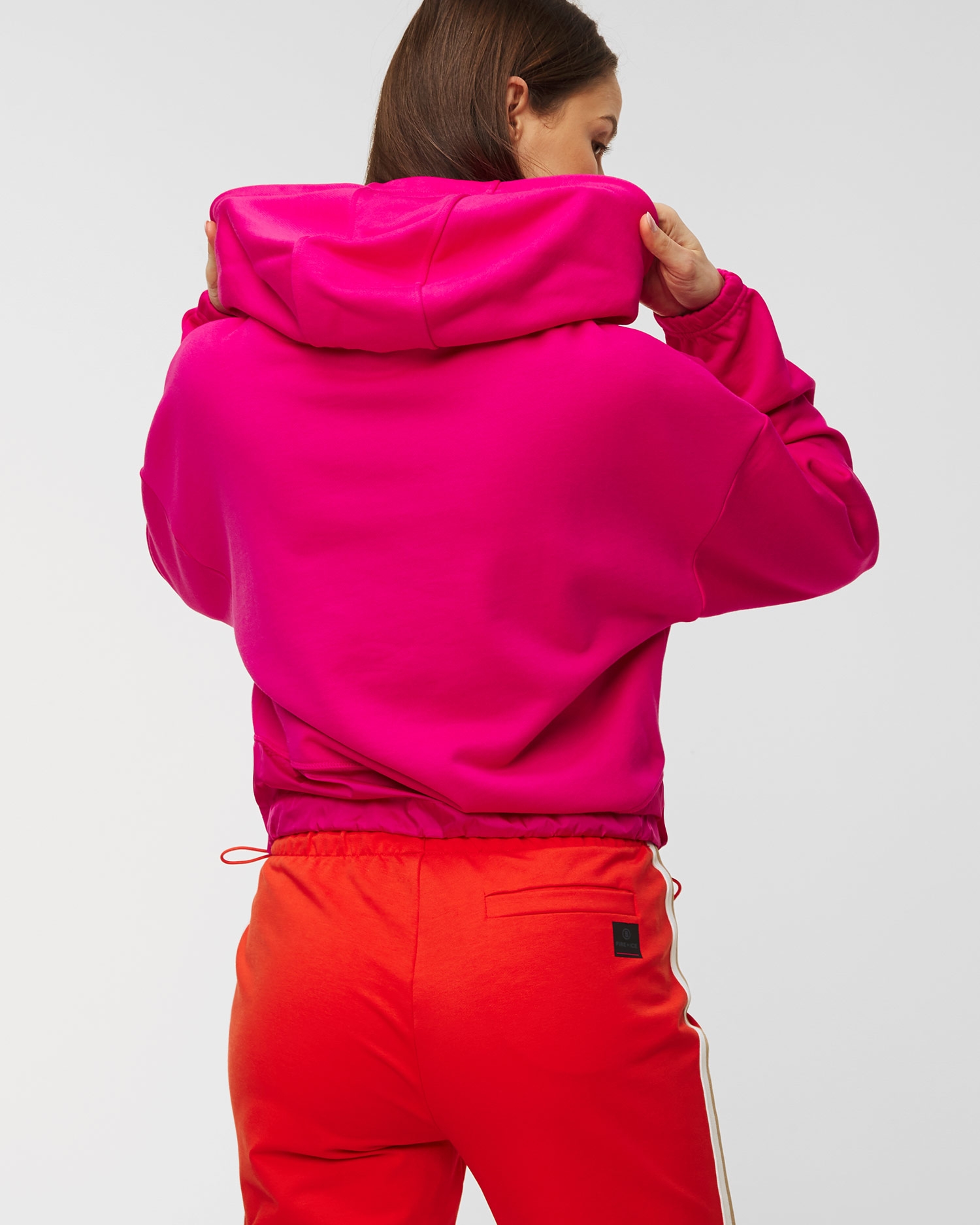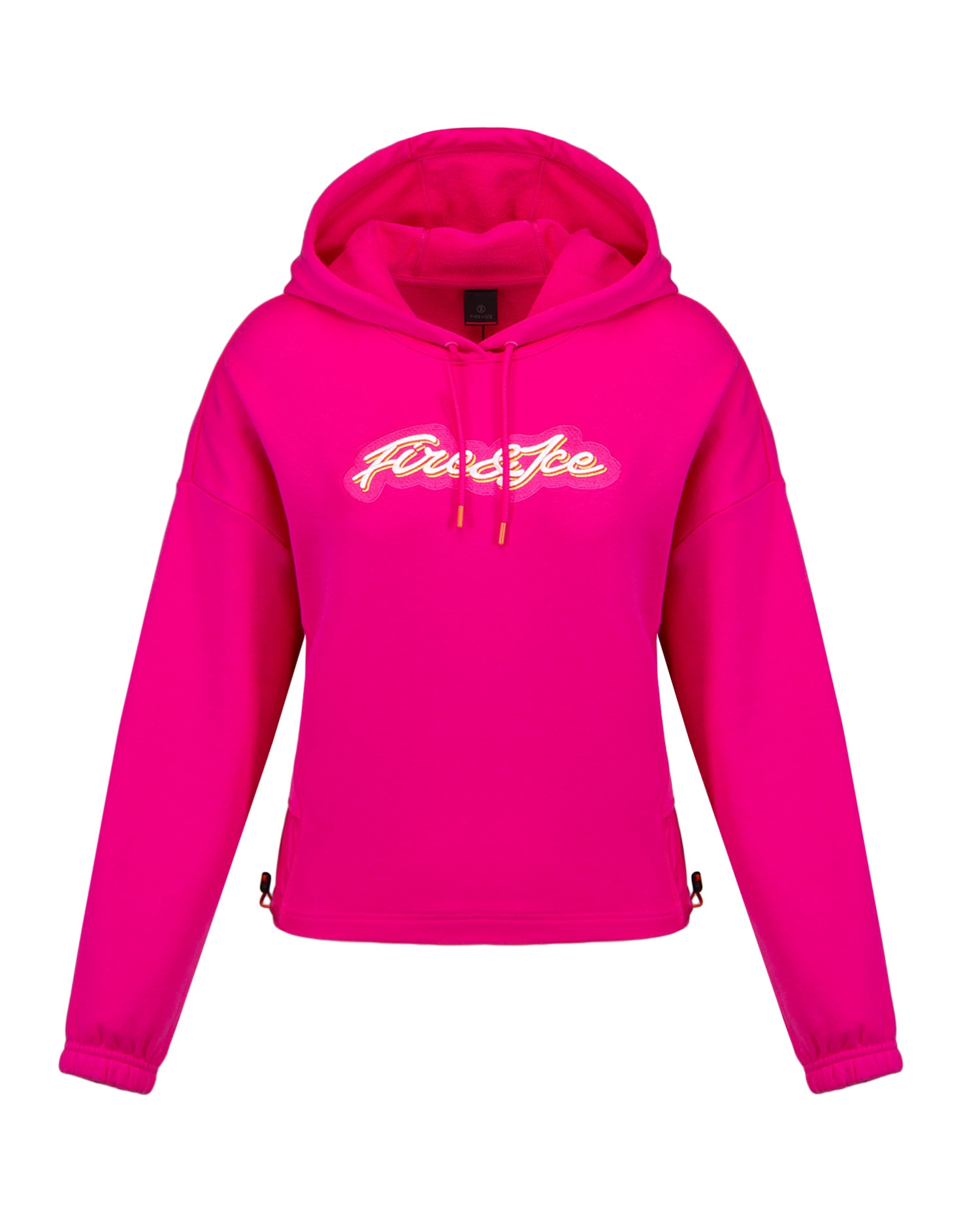 Hanorac pentru femei BOGNER FIRE+ICE CANA cu croială lejeră va fi excelent pentru ținutele în stil sportiv. Fabricat din țesătură moale și groasă din bumbac terry. Inserții din nailon delicat. Gluga este ajustabilă și decorată cu logo brodat. Linia umerilor este ușor coborâtă, iar mânecile sunt terminate cu manșete elastice. Partea din față este decorată cu o broderie modernă FIRE+ICE.