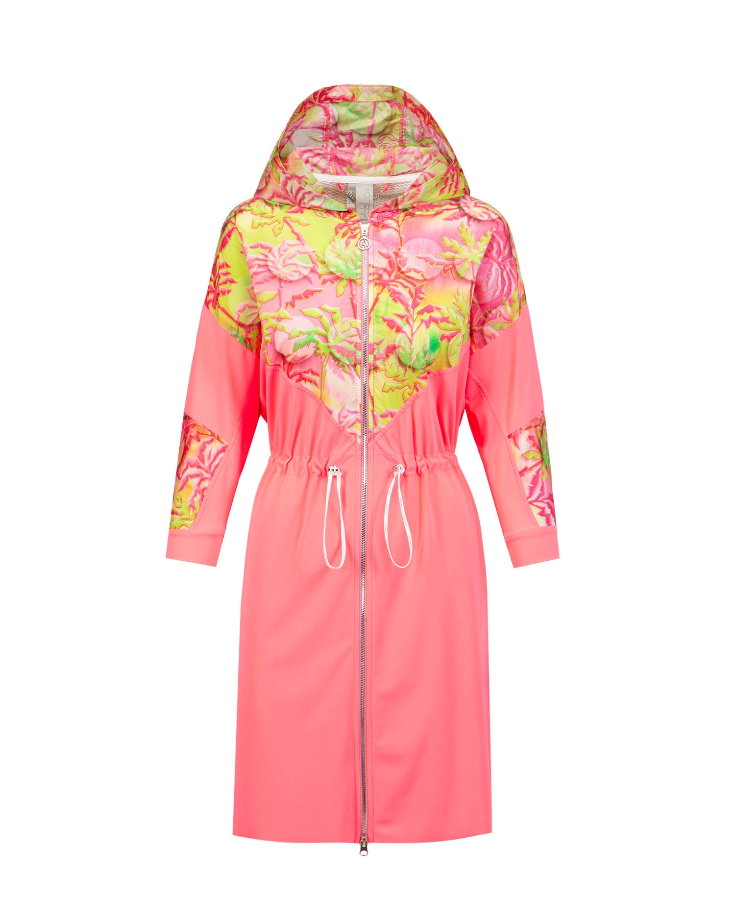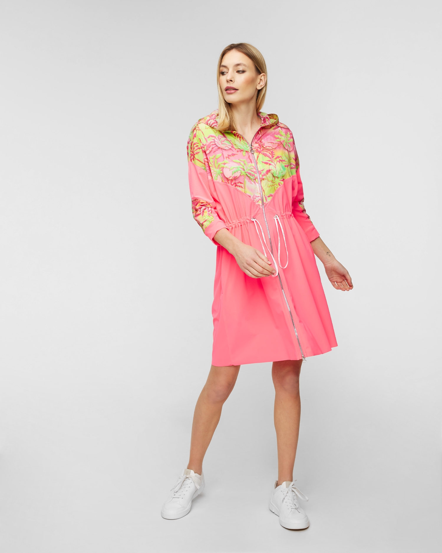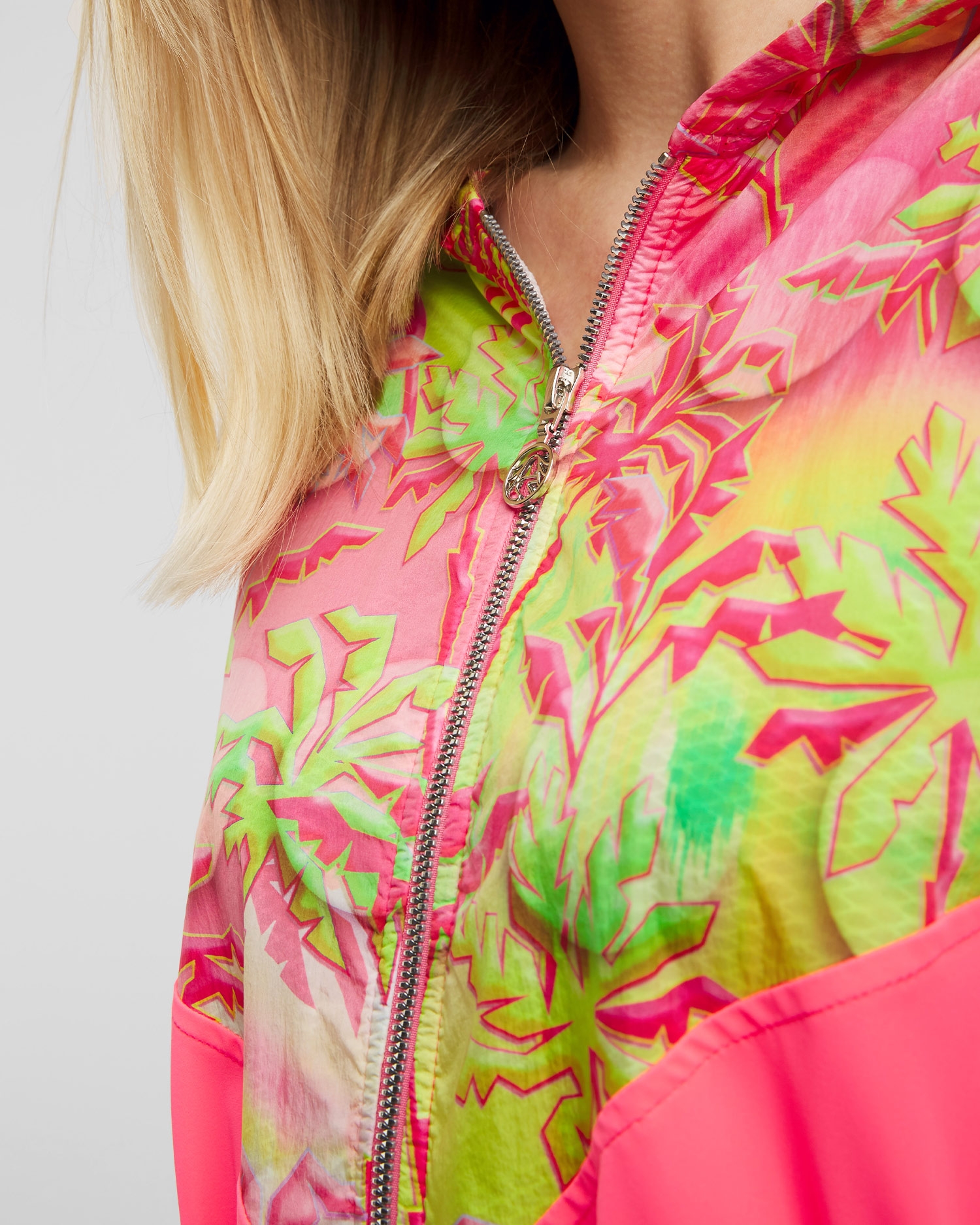 Paltonul Sportalm cu două fețe este o opțiune hibridă ușoară pentru perioada de tranziție. Captivează cu imprimeul său original de palmier. Glugă integrată. Cordonul din talie permite o potrivire ideală. În interior se găsește o căptușeală din plasă i perforowane wstawki w rękawach dla lepszej wentylacji. <