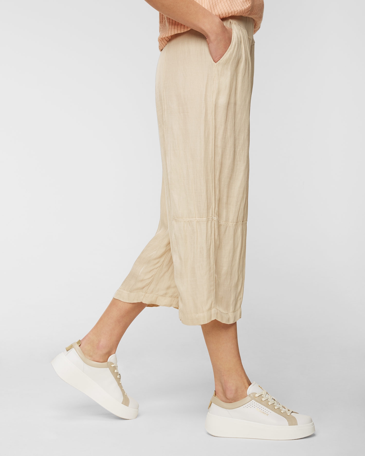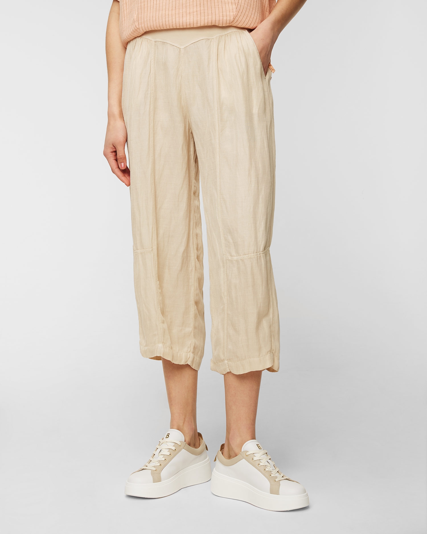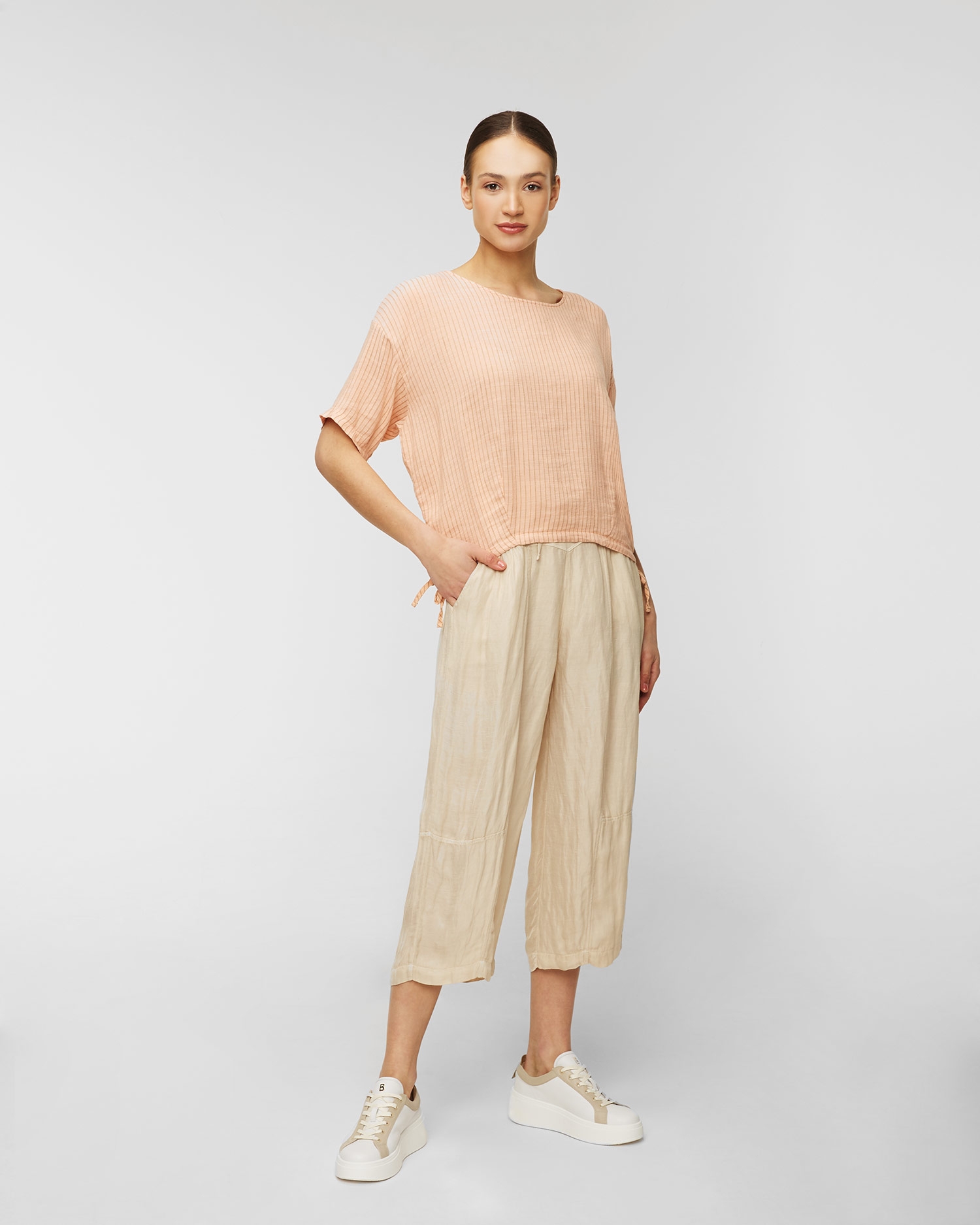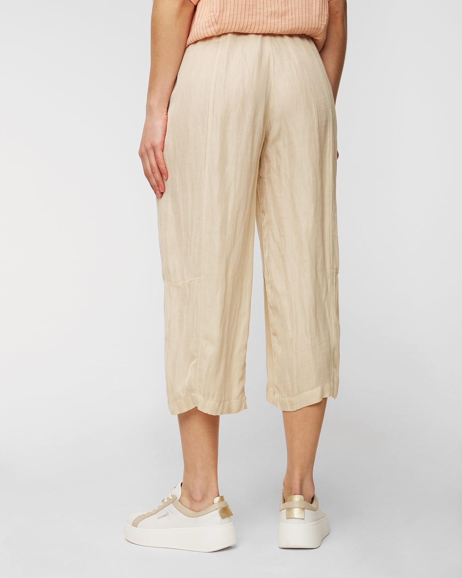 Pantalonii din in de la Deha sunt extrem de ușori și confortabili, iar culoarea lor caramelizată va completa orice look. Partea de jos cu cordon este realizată dintr-un amestec plăcut de in și vâscoză pentru un confort de vară. Talia înaltă, cu legătură, subliniază silueta feminină. Picioarele profilate asigură libertate de mișcare. Două buzunare lateralee.