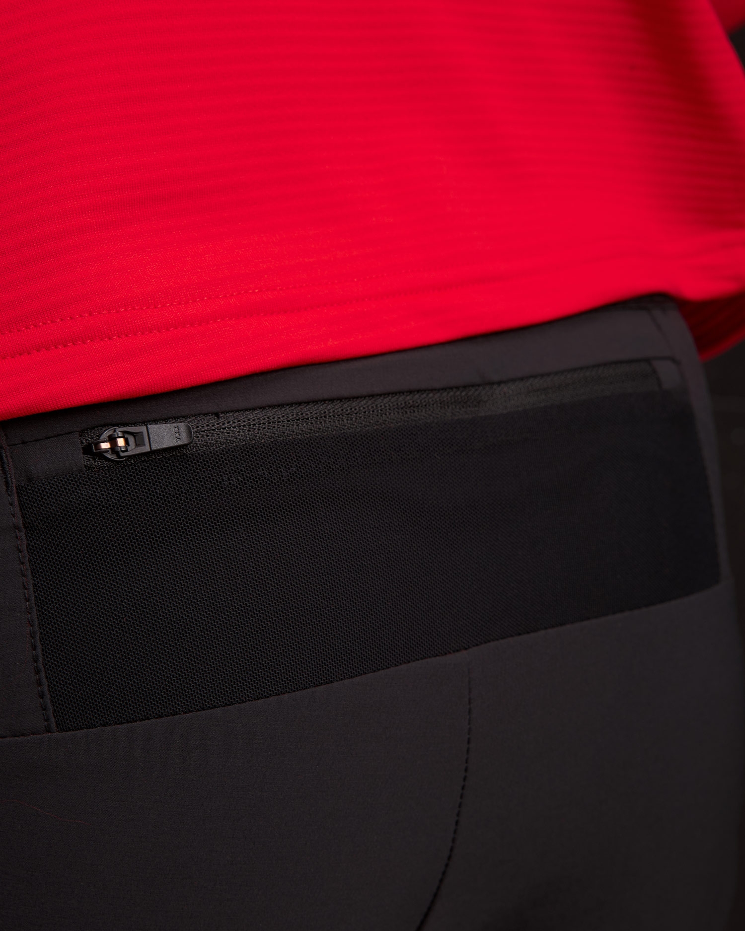 Fabricat din Durastretch® țesătură tehnică stretch care rezistă la deteriorări accidentale, datorită fibrelor de nailon durabile. Proprietățile antivânt și impregnarea DWR oferă protecție împotriva precipitațiilor ușoare și a vântului, fără a sacrifica respirabilitatea excelentă. Genunchii profilați și inserția între picioare crește mobilitatea. Buzunare laterale. În interiorul un buzunar cu fermoar. Picioare terminate cu fermoare.