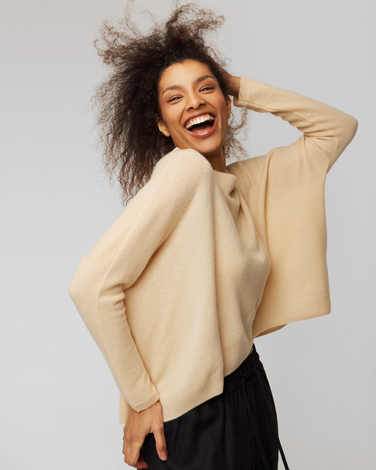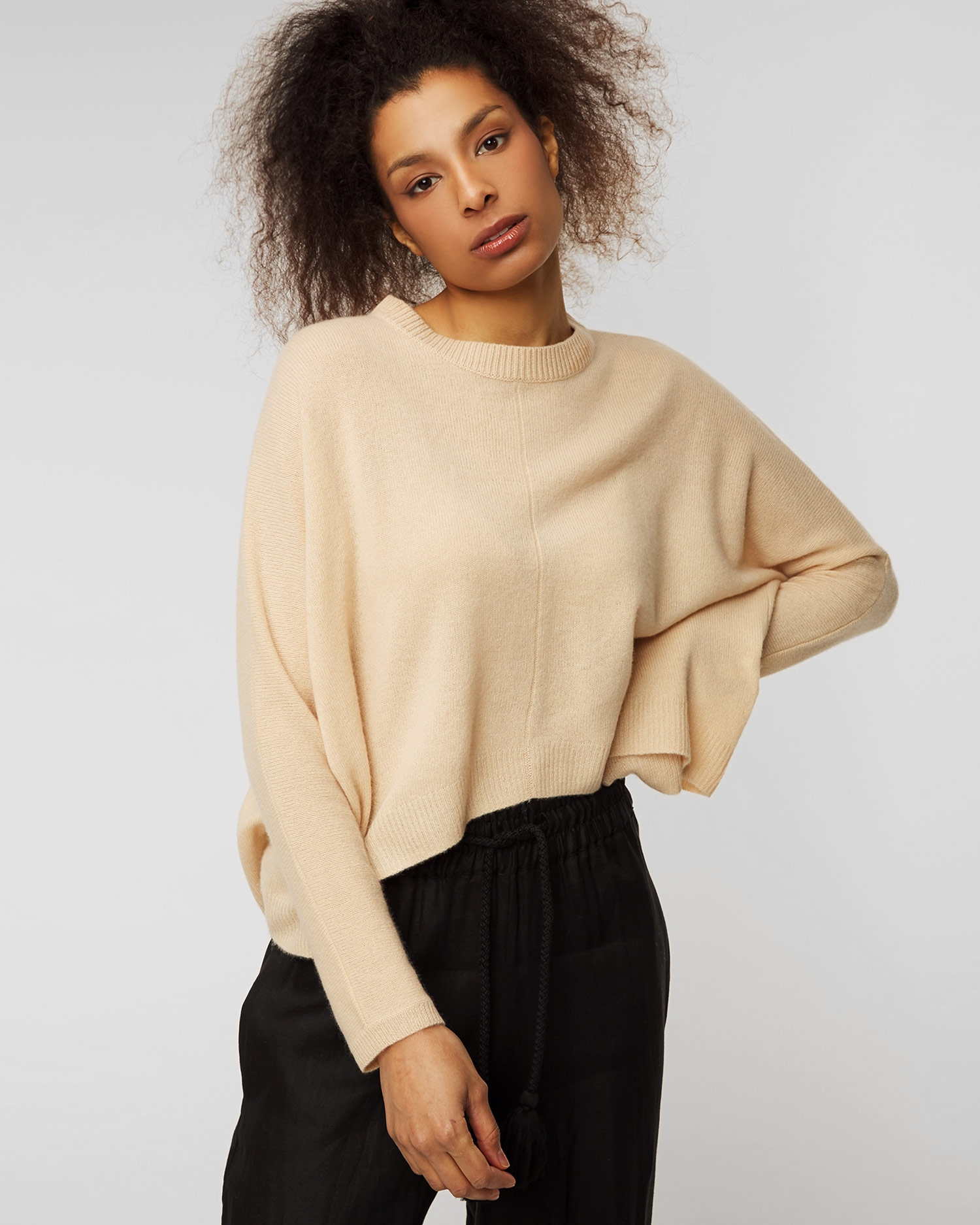 Va fi ideal ca bază pentru stilizațiile tale. Cu designul său atemporal, croiala casual și combinația de culori neutre, va completa cu succes multe look-uri de zi cu zi, pentru un aspect confortabil și elegant. Confecționat din cașmir delicat, cu proprietăți naturale de respirabilitate și termoreglare, pentru a asigura confortul termic indiferent de temperatură. Mânecile și partea de jos sunt terminate cu o bordură striată.