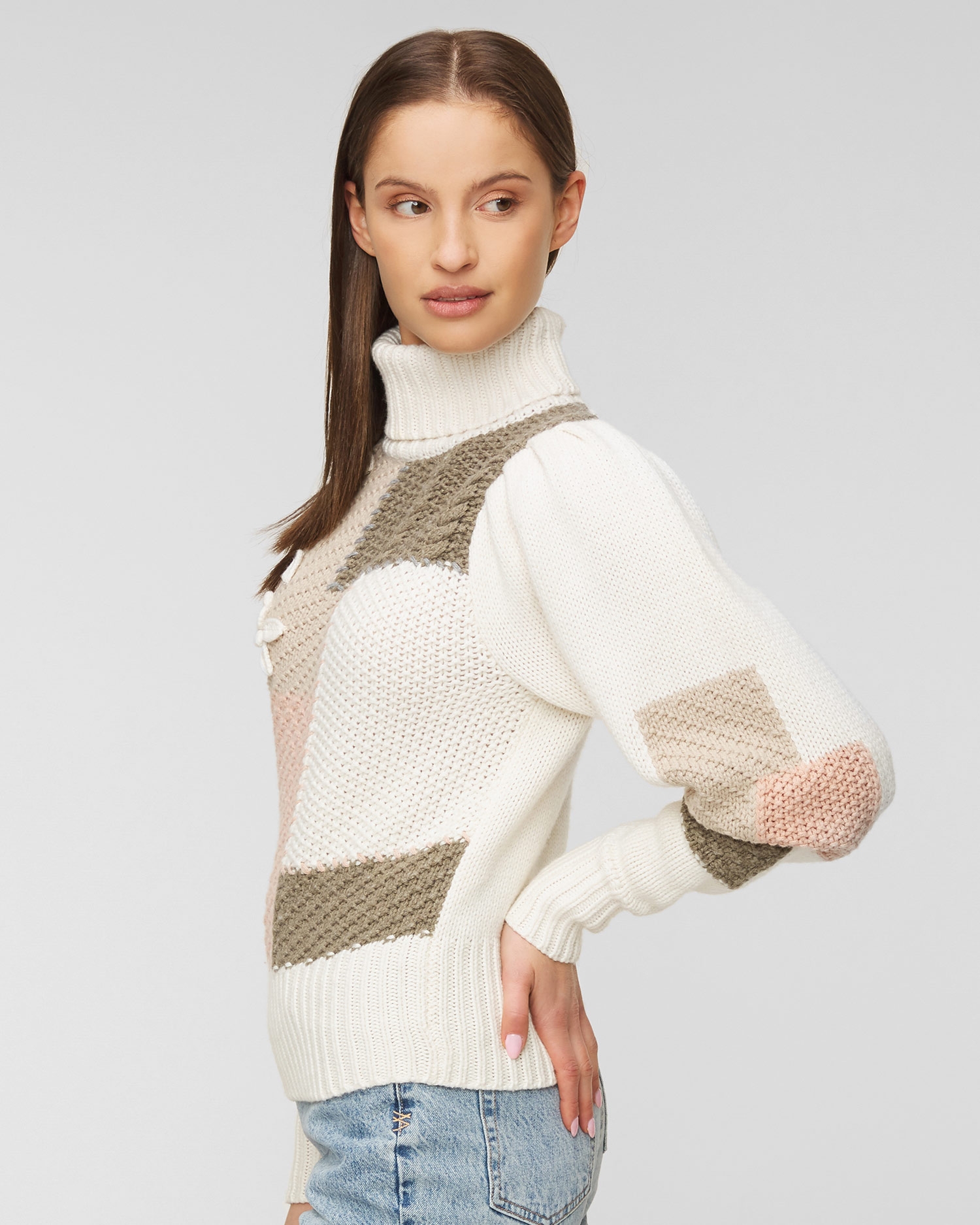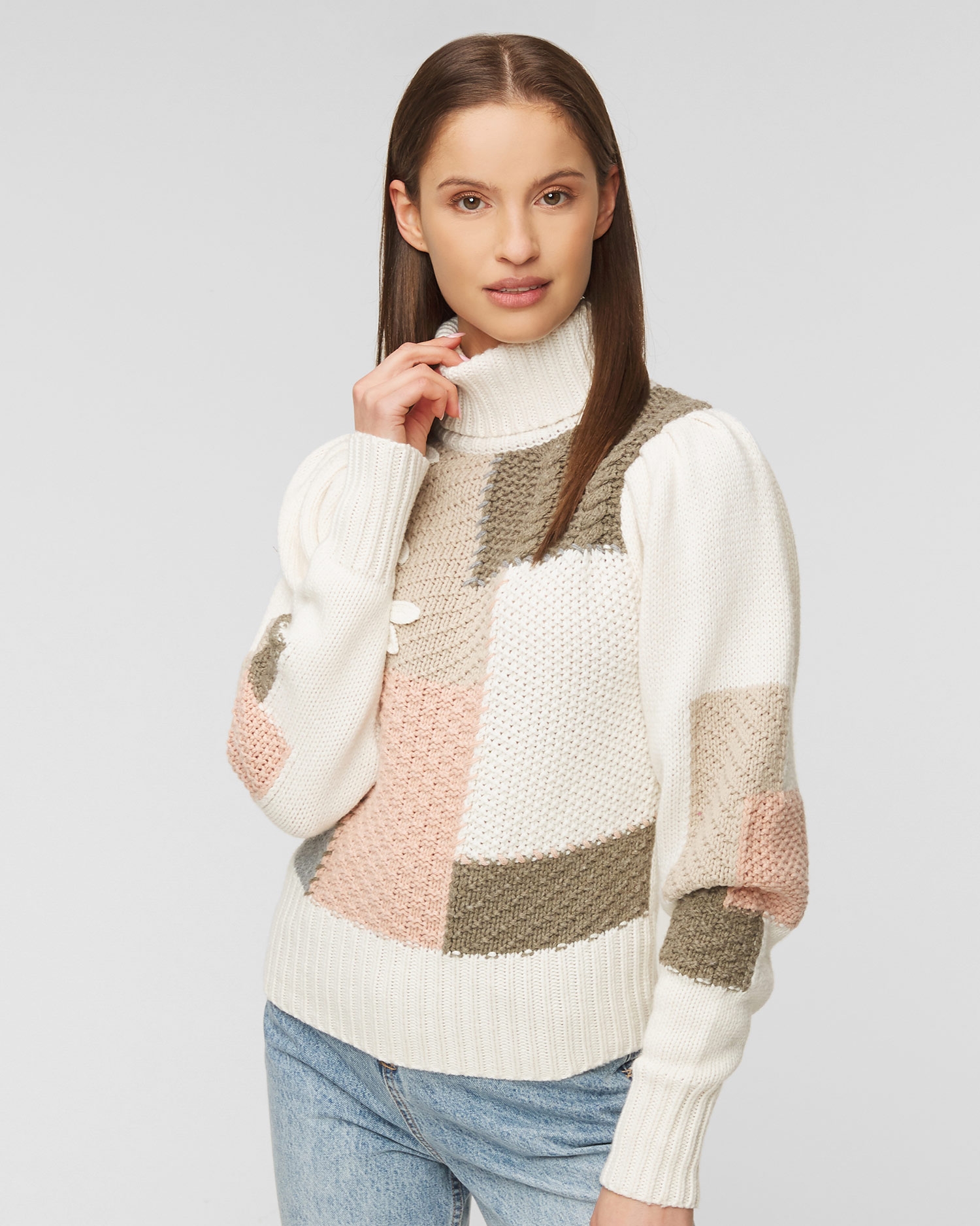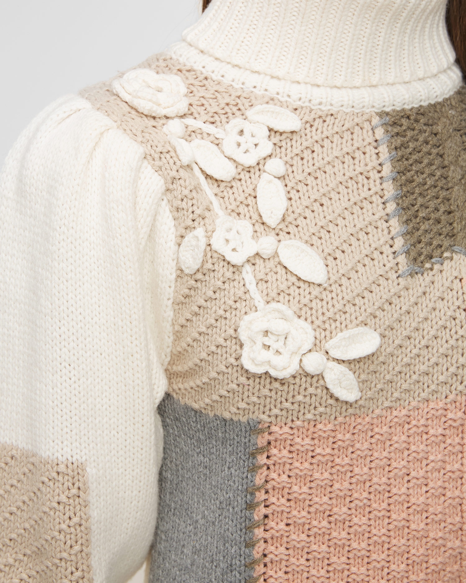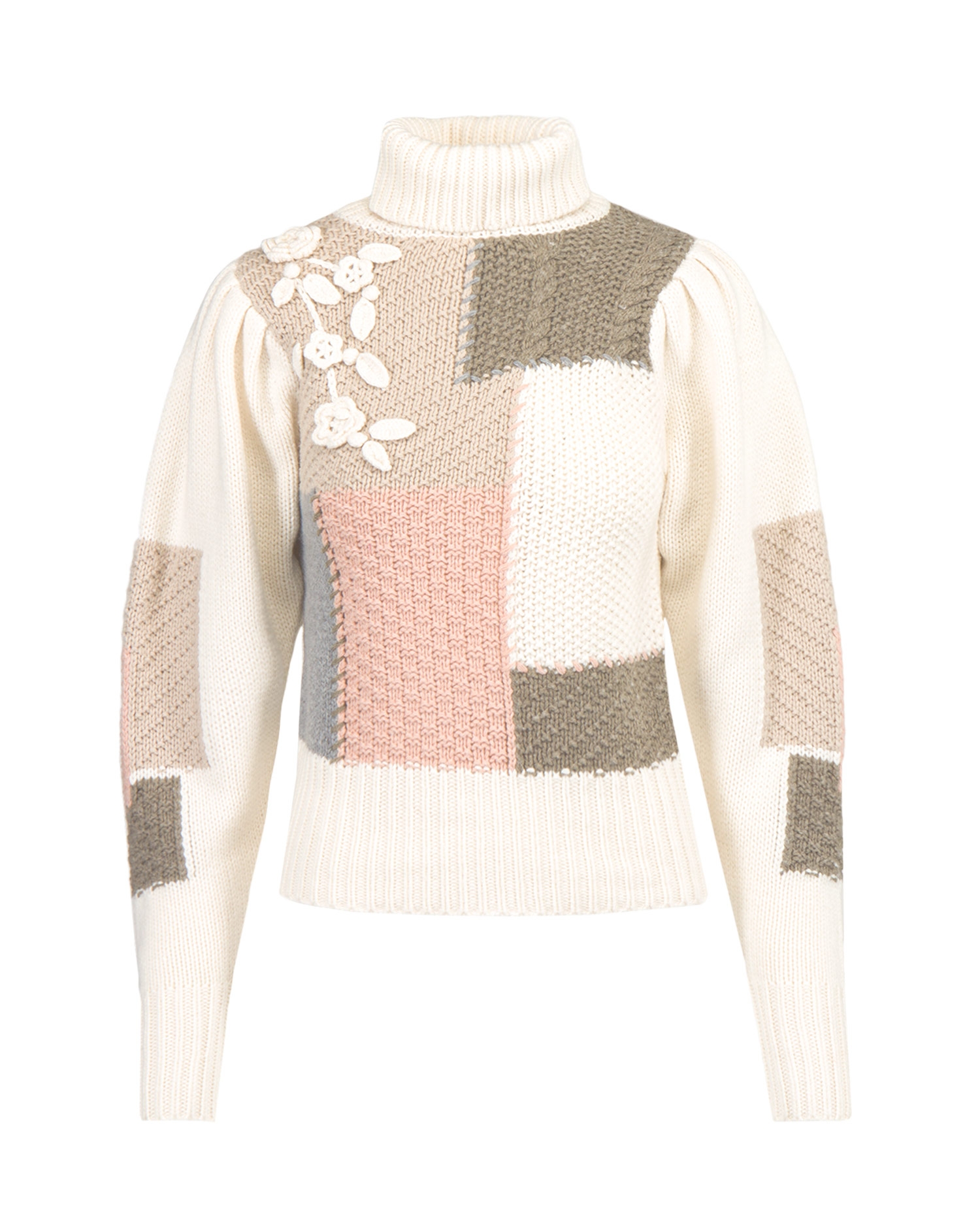 Puloverul de damă LOVESHACKFANCY ALLAN te va face să arăți strălucitor, chiar și în zilele de toamnă. Puloverul se distinge printr-un model neobișnuit și o combinație îndrăzneață de culori. Combinația de lână și bumbac garantează o izolare termică perfectă și higroscopicitate. Compoziția sa oferă, de asemenea, caracteristici precum flexibilitate, rezistență la murdărie și proprietăți bacteriostatice. Partea din jurul gâtului, partea de jos a puloverului și manșetele mânecilor au fost fabricate dintr-un material striat. Mâneci bufante, ușor încrețite, finisate cu o manșetă largă. Pulover de damă LOVESHACKFANCY ALLAN decorat cu flori brodate de culoare bej.