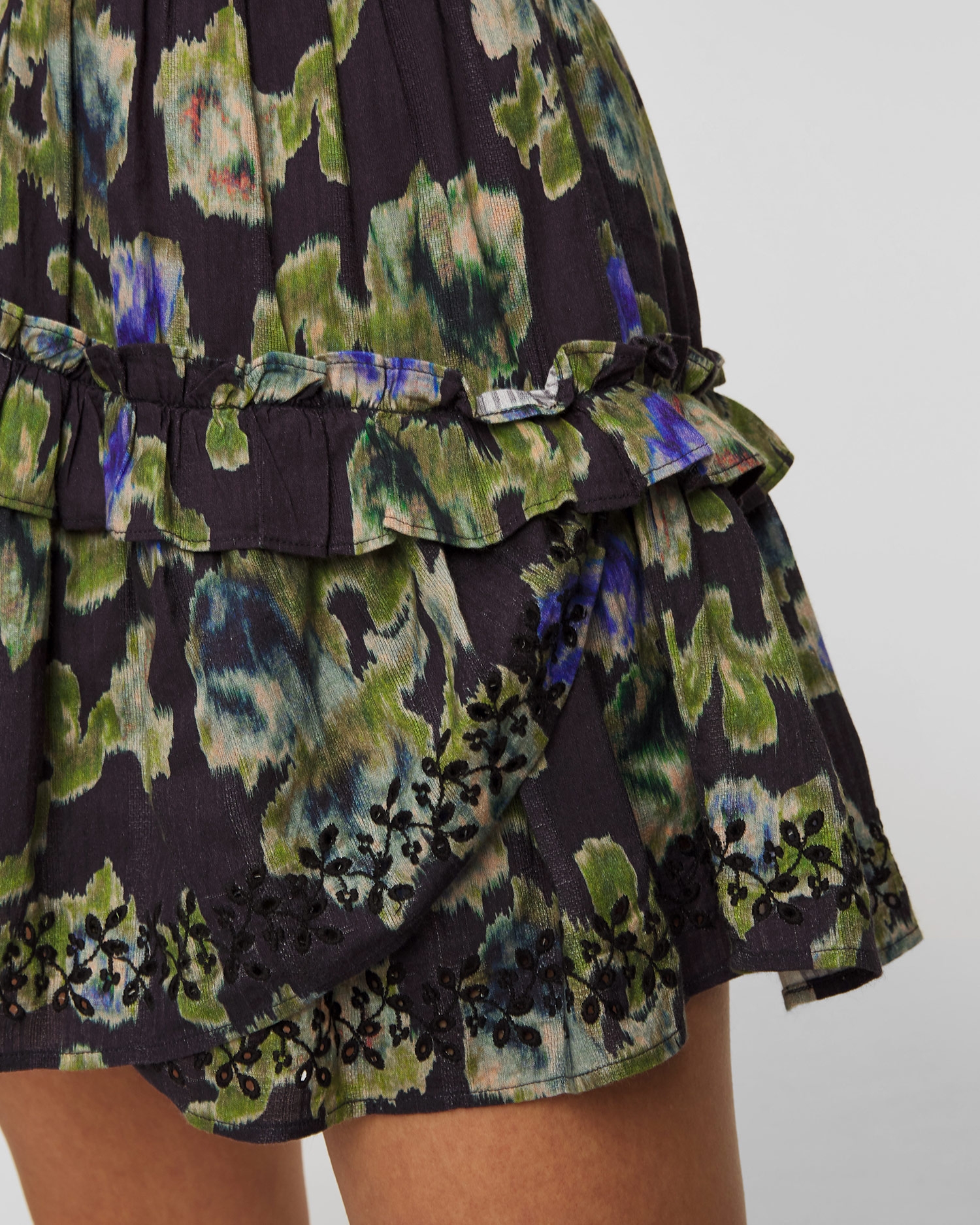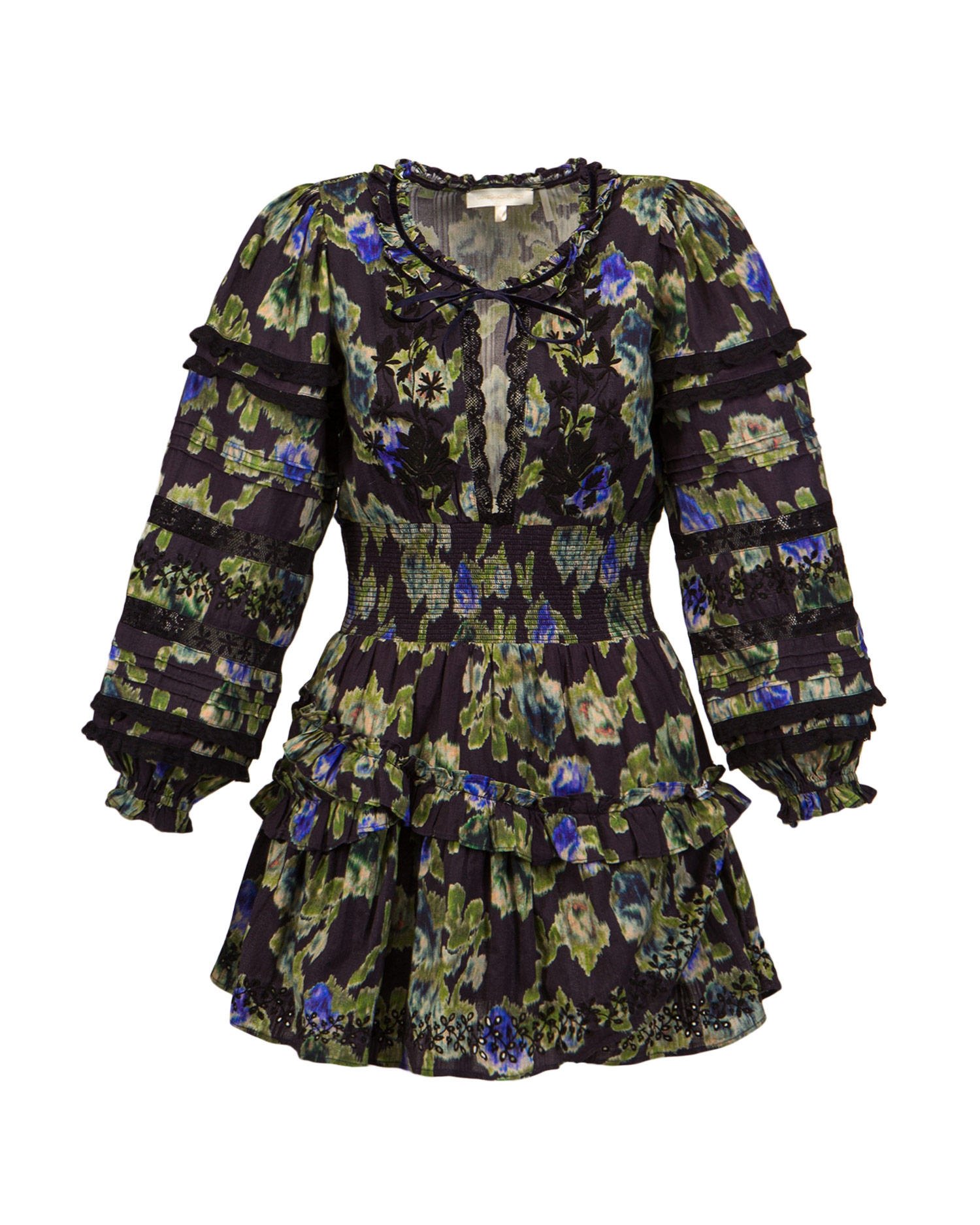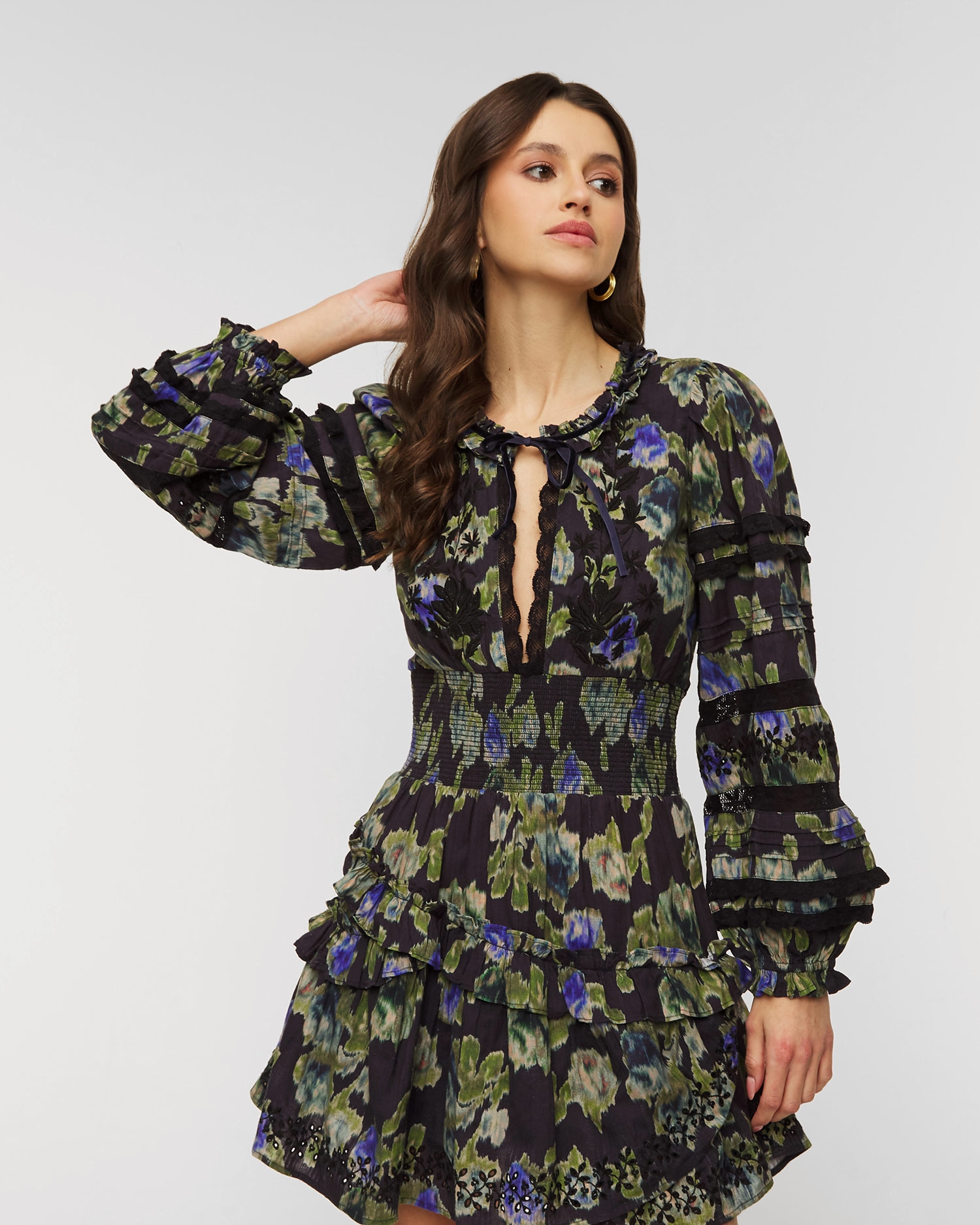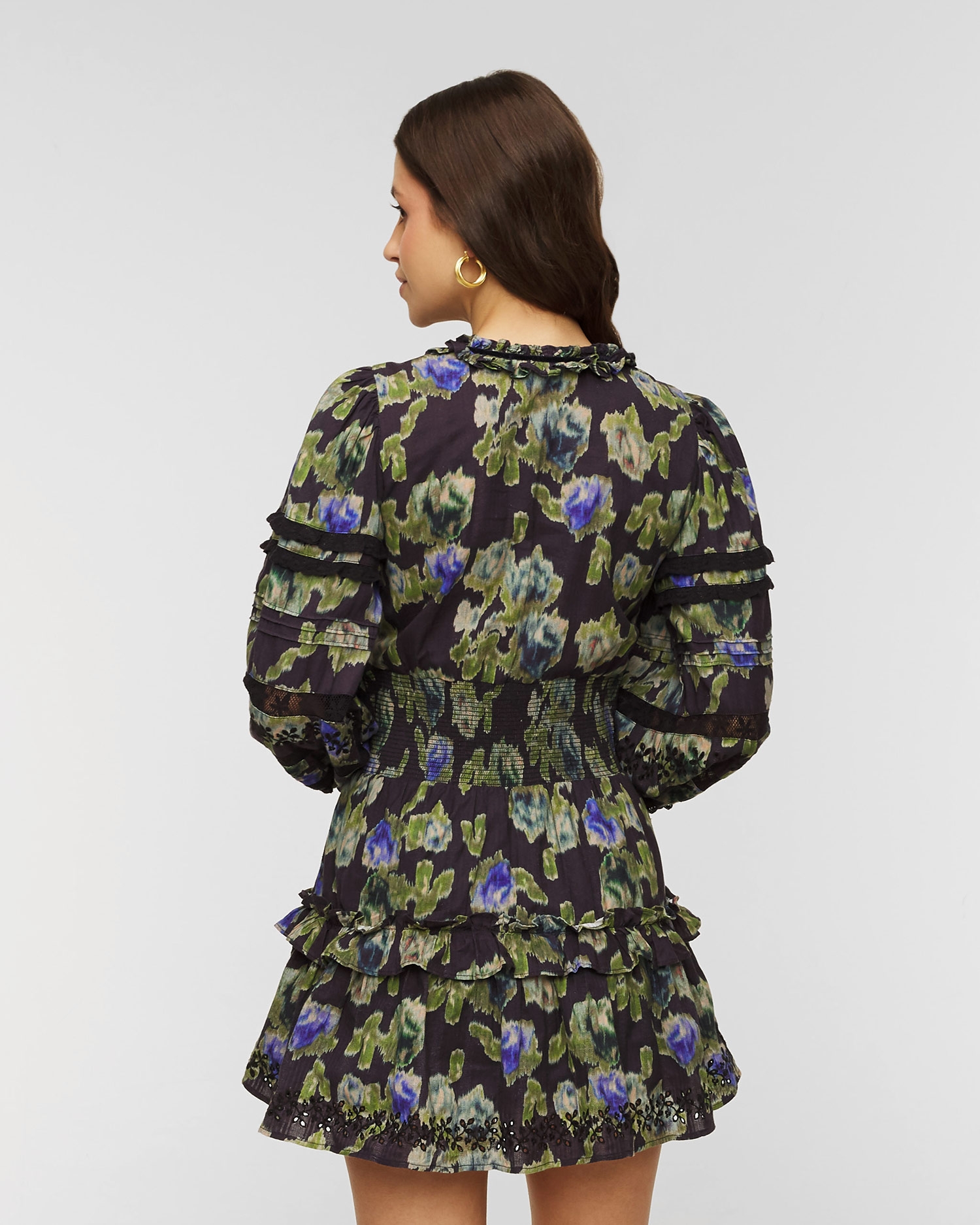 Rochia Love Shack Fancy Clarkie din bumbac moale și aerisit, înfrumusețată cu broderii. Gulerul cu volane se leagă la gât cu o panglică delicată de catifea. Elasticul din talie subliniază excelent figura feminină. Confecționată din bumbac respirabil, aerisit și plăcut la atingere. Mâneci lungi tip balon, decorate cu pliuri, broderie ajurată și dantelă, finalizate cu o manșetă cu volane.