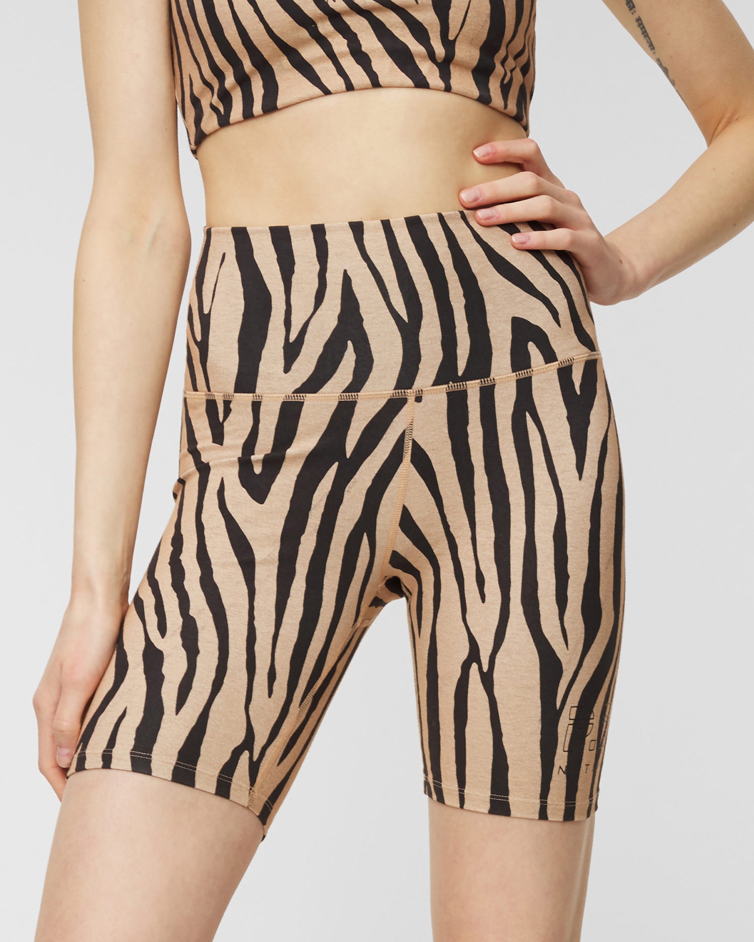 Șorturile P.E NATION DOUBLE UNDER SPORTS BRA sunt o alegere excelentă atât pentru antrenament, cât și pentru ținute de oraș. Fabricate din bumbac organic de calitate înaltă, cu adaos de elastan. Asigură confortul în timpul activității datorită respirabilității naturale a materialului, permițând în același timp o libertate maximă de mișcare. Talia elastică puternică îți accentuează silueta și menține pantalonii scurți la locul lor pe măsură ce te miști. Șorturile atrag atenția prin imprimeul cu motiv animal. Sunt decorate cu logo delicat pe piciorul stâng.