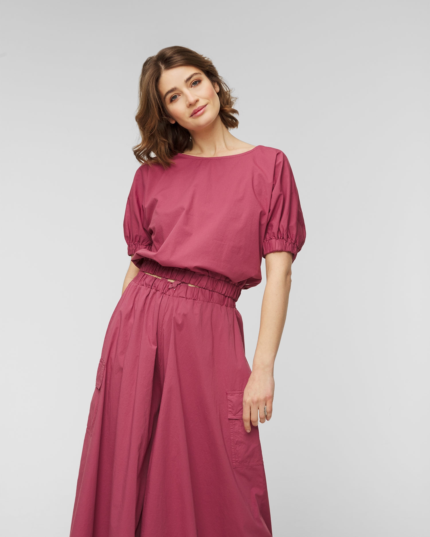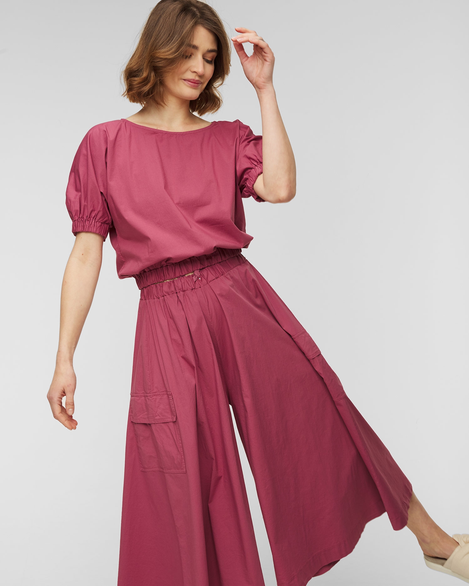 Topul DEHA cu croială tip trapez va completa cu succes ținutele tale de vară. Fabricat din țesătură de bumbac de înaltă calitate ceea ce îl face moale, delicat și aerisit. În plus nu se încrețește și este plăcută la atingere. Decolteu în formă de barcă, mâneci în formă de T și tiv cu elastic plat cusut în jur. Pe partea stângă se găsește logo argintiu Deha. Patch semnat la spate.