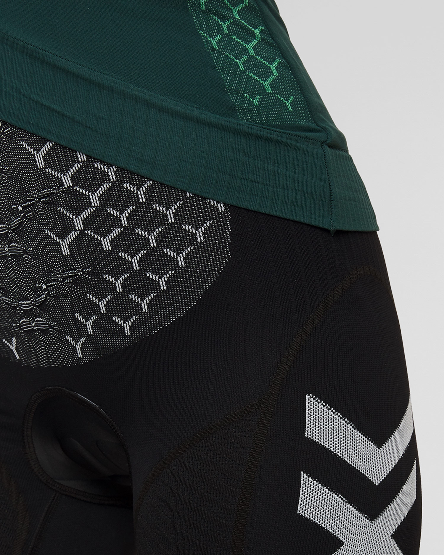 Manșonul profilat cu tehnologie 85° Technology Sleeve, se adaptează poziției tale pe bicicletă, facilitând parcurgerea kilometrilor în confort. Mânecile și partea inferioară sunt finisate cu bandă Aktiv-Bund pentru a asigura o potrivire perfectă fără alunecare, în timp ce gâtul Dolphin Rider Neck, cu formă specială, previne iritarea în zona gâtului. Este prevăzut, de asemenea, cu buzunare în partea inferioară a spatelui pentru o depozitare sigură și acces rapid la diverse accesorii necesare în timpul călătoriei.