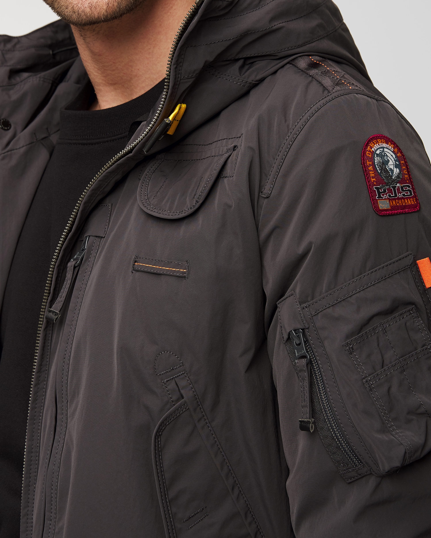 Bunda Parajumpers Gobi Spring v strihu bomber je módna ponuka, ktorá úspešne doplní Váš každodenný mestský outfit. Vyrobená z hladkej a odolnej polyesterovej tkaniny, pokryté hydrofóbnym povlakom, ktorý poskytne vynikajúcu ochranu proti vlhkosti v nepriaznivých poveternostných podmienkach. Bunda regulárneho strihu zapínaná na obojsmerný zips. Kapucňa s možnosťou nastavenia objemu. Bunda upúta pozornosť početnými vreckami s našitými chlopňami vpredu a dodatočným vreckom na zips na ľavom rukáve. Zdobená označkovanou nášivkou značky na ľavom ramene a kultovým príveskom na boku.