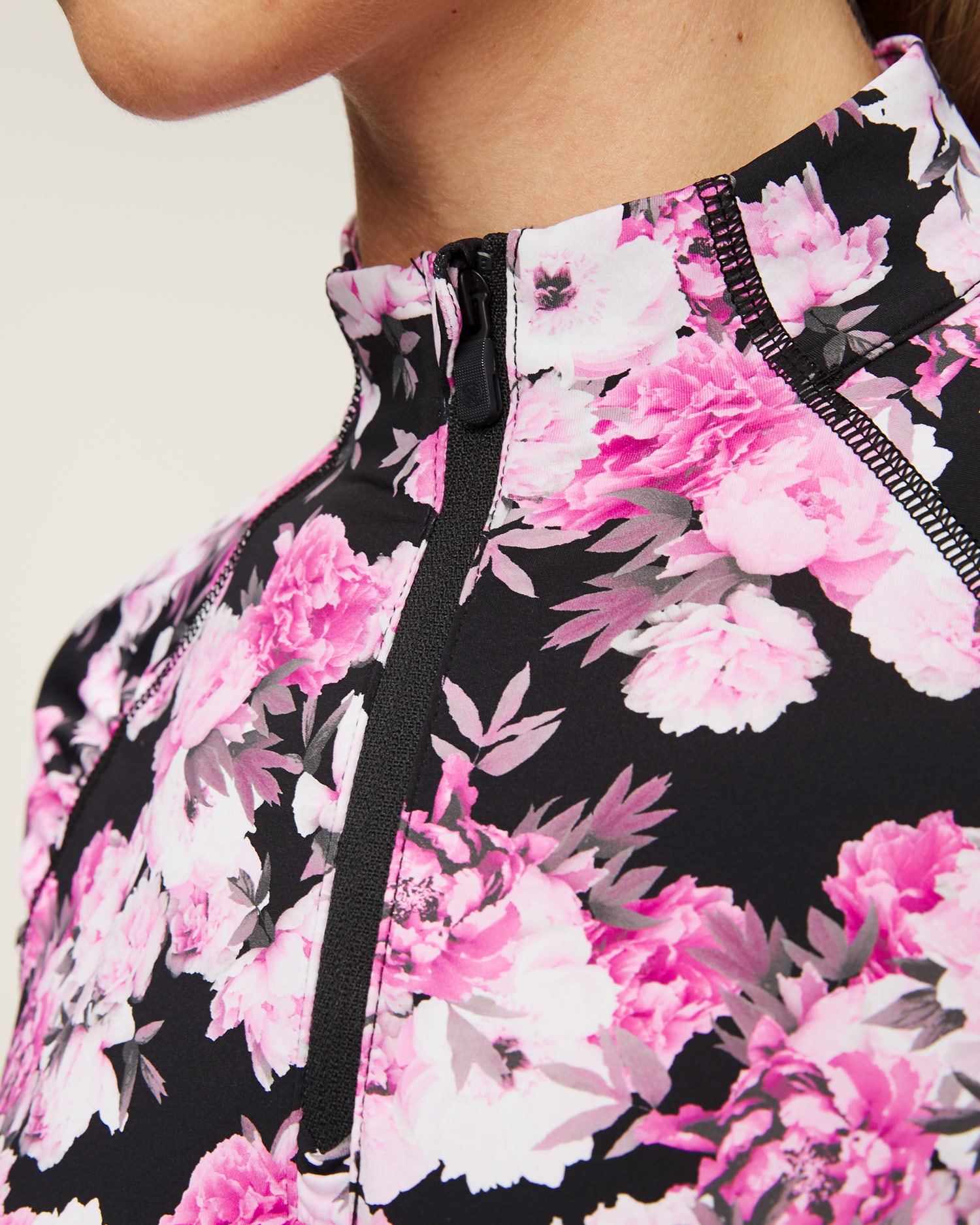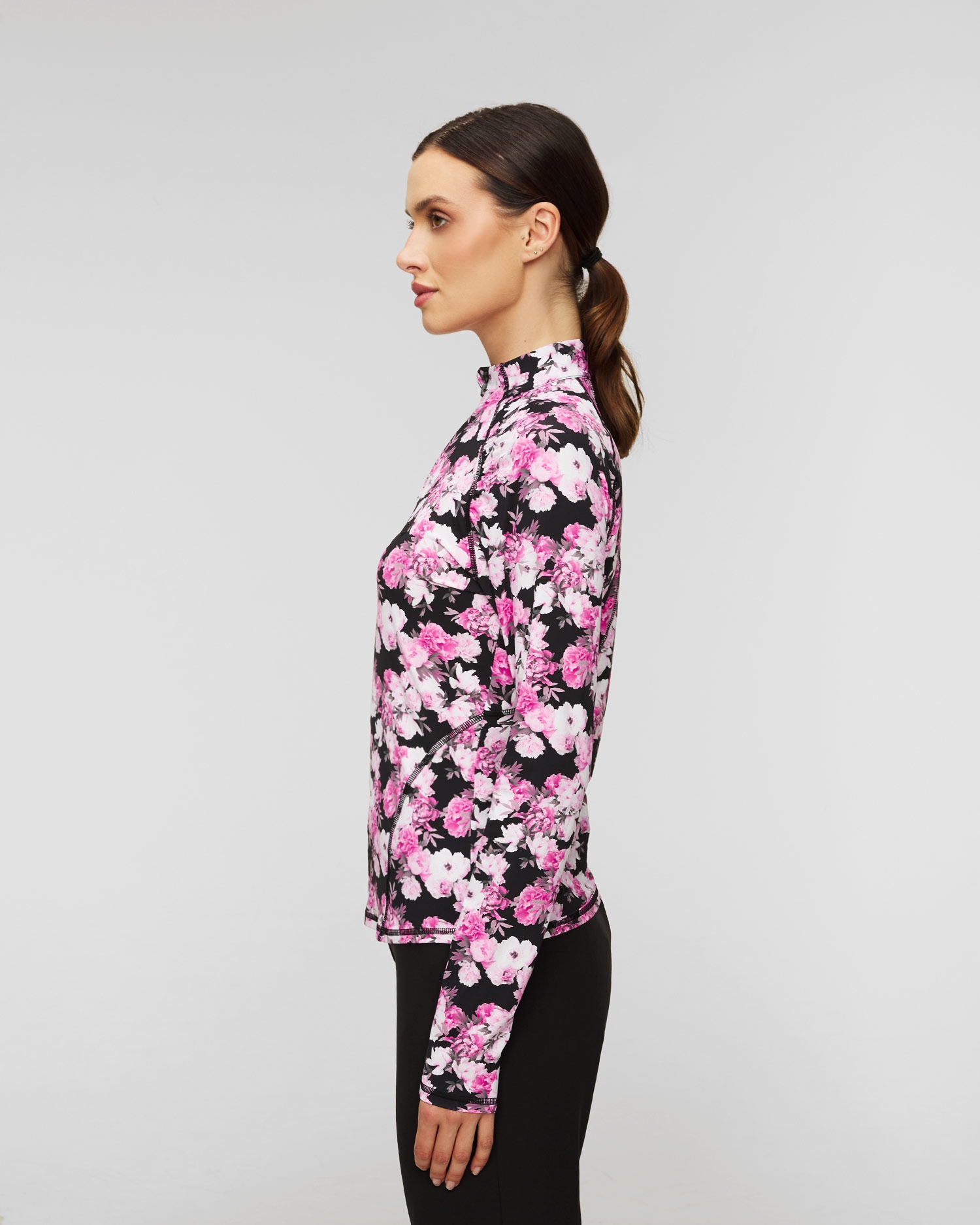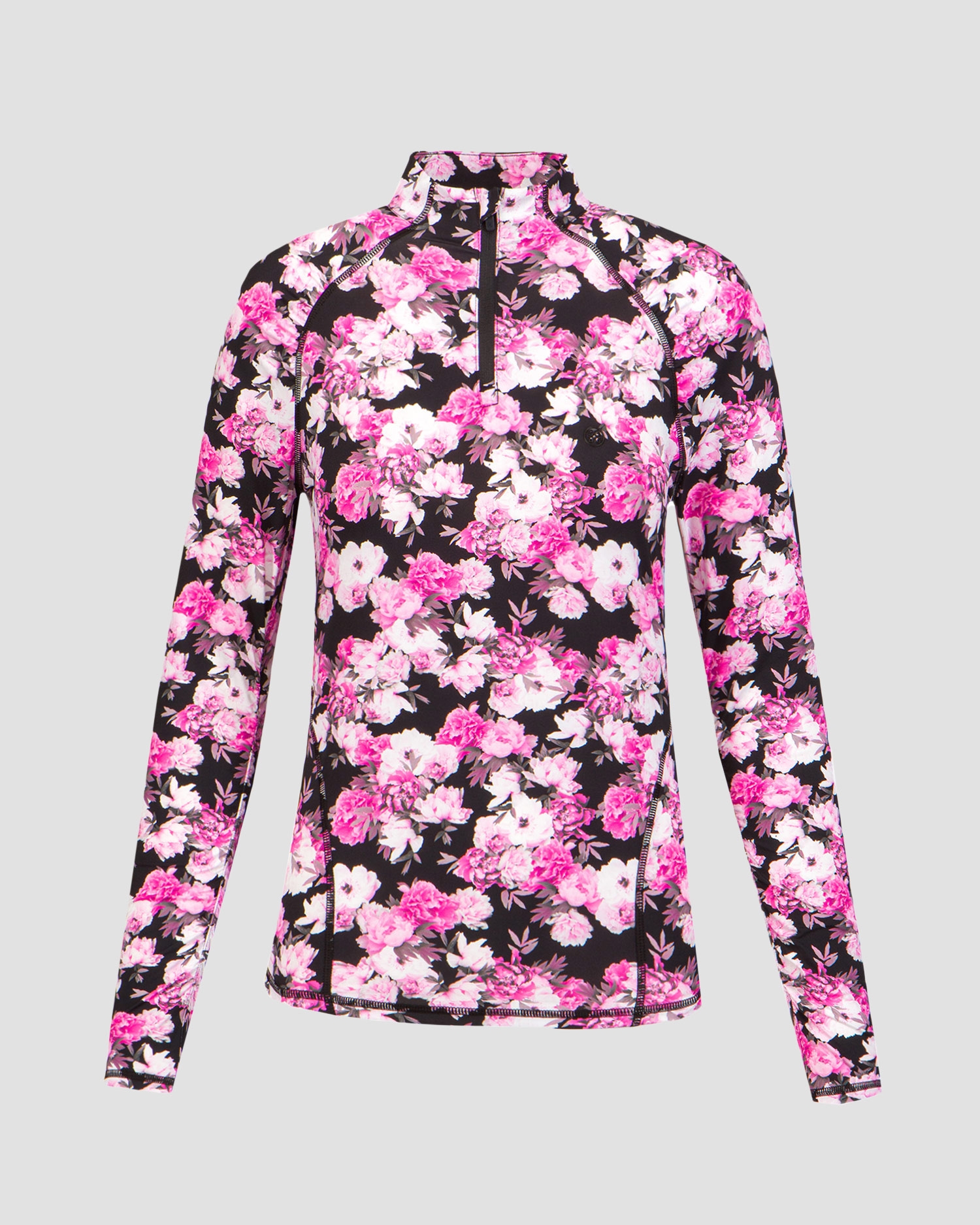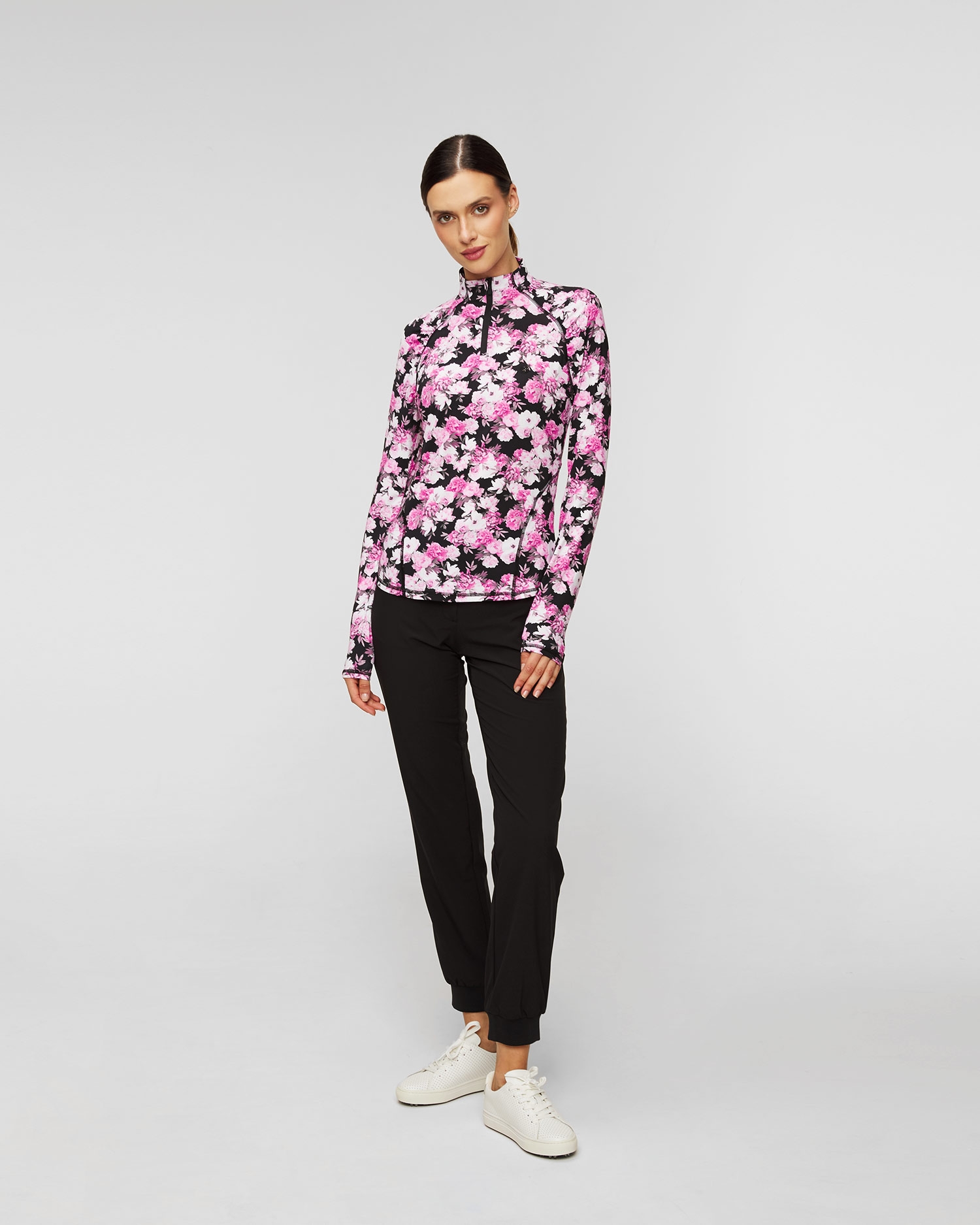 Dámska mikina G/Fore Photo Floral Silky Technylon s originálnou pestrofarebnou kvetinovou potlačou. Dokonale sa uplatní ako súčasť športového štýlu na golfové ihrisko, na ktorom sa postará o plný komfort počas hry. Vyrobená z vysokokvalitnej technickej tkaniny s vysokou štvorsmernou elasticitou, ktorá navyše vykazuje ochranné vlastnosti proti škodlivému UV žiareniu. Strih na mieru zaručí, že dokonale sedí na postave a zároveň poskytuje výnimočný komfort počas nosenia. Mikina s dlhým rukávom a polovičným zipsom.