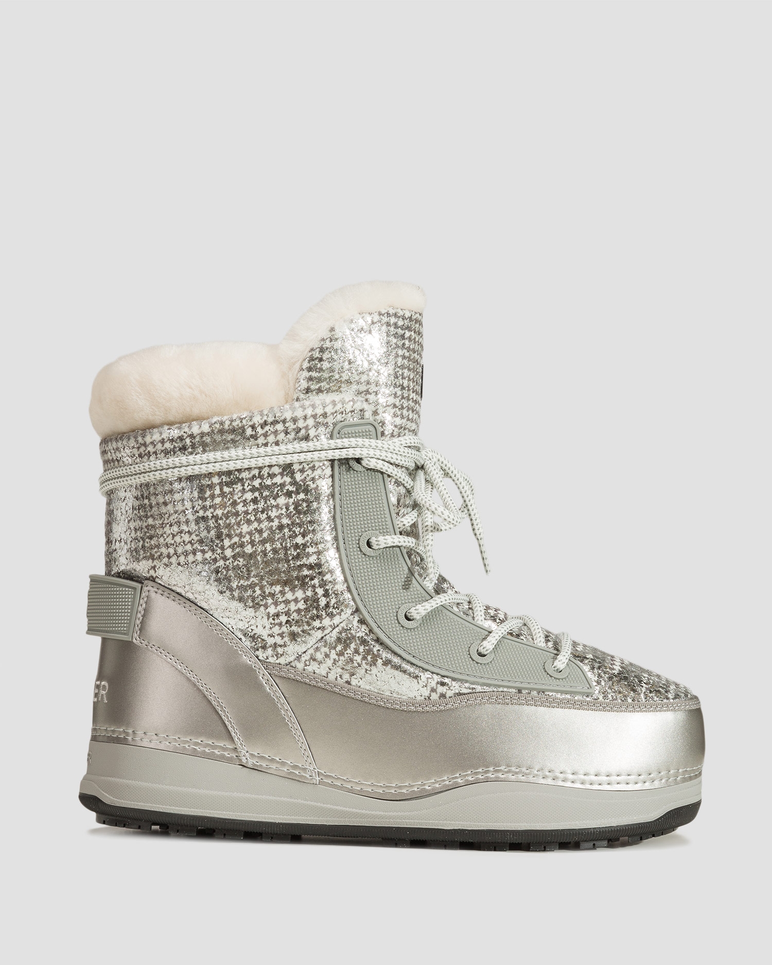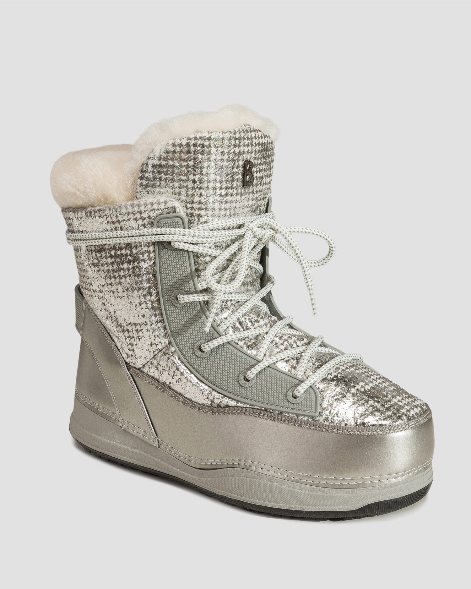 Dámske snehové topánky BOGNER Verbier 2 vo futuristickom štýle. Vyznačujú sa metalickým leskom a pepito vzorom. Ideálny návrh do zimného strediska počas apres-ski. Vysoký zvršok sa postará o maximálne pohodlie. Ozdobné šnurovanie umožňuje individuálne nastavenie šírky topánky.
