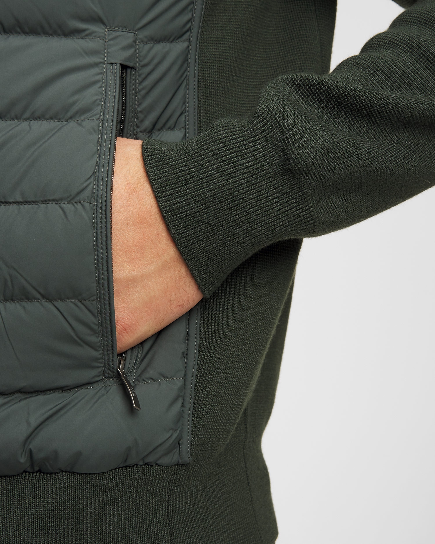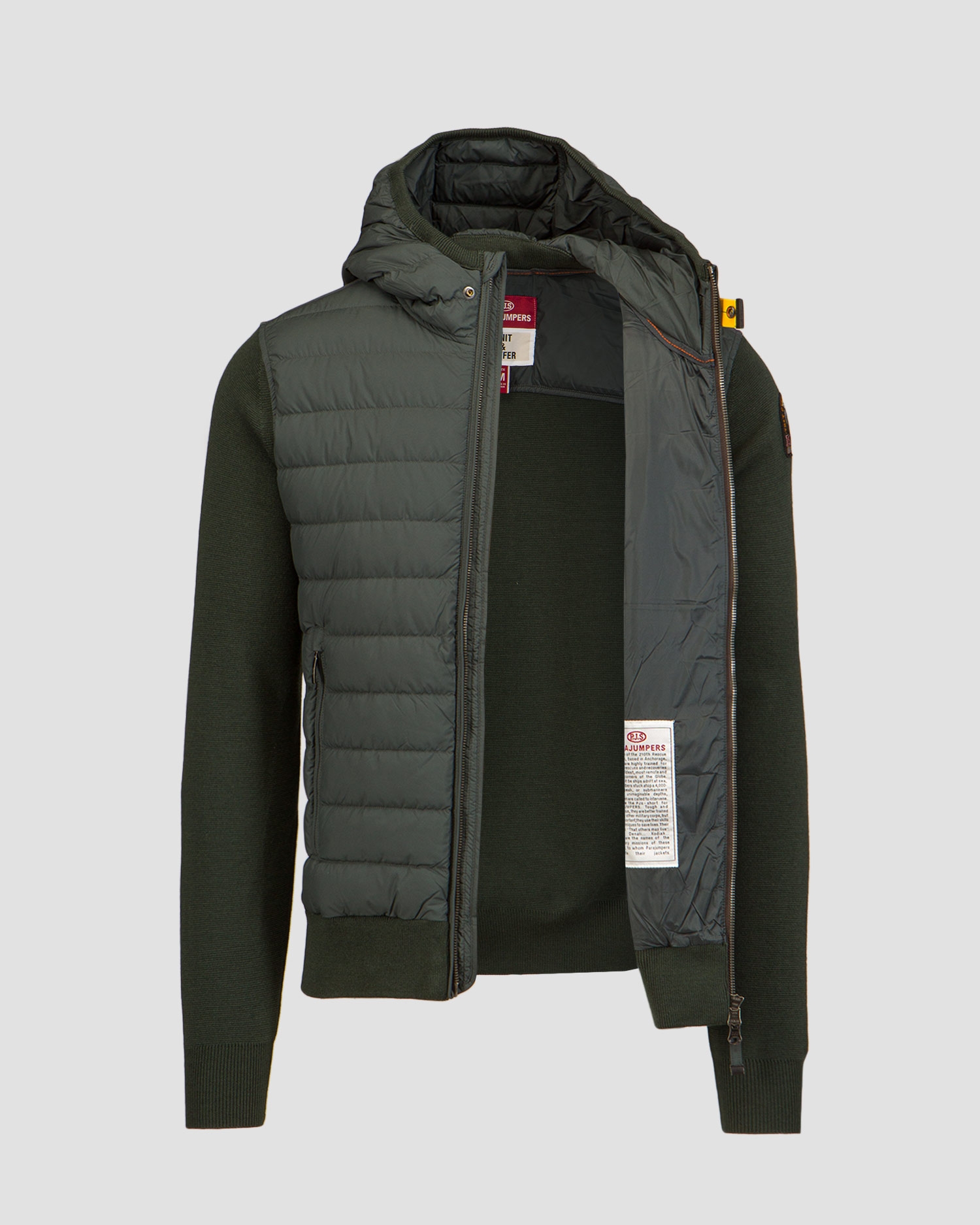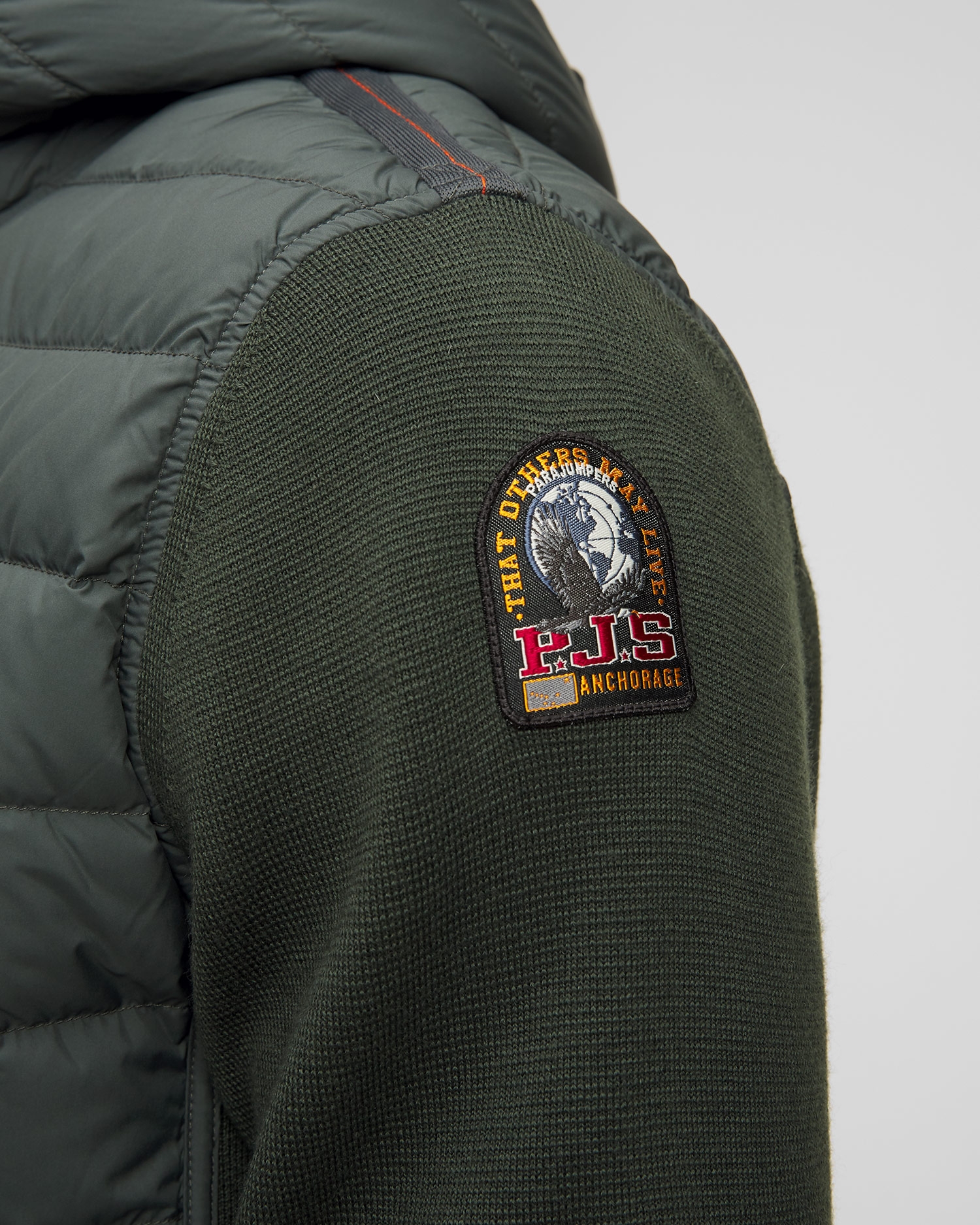 Zelená pánska hybridná bunda Parajumpers Illuga je univerzálnou voľbou pre mužov, ktorí si cenia pohodlie a moderný dizajn. V závislosti od potreby sa výborne osvedčí ako vrchná vrstva alebo ako medzivrstva štylizácie. Vyrobená z kombinácie teplého vlneného úpletu a prešívanej tkaniny s nepremokavou vrstvou. Zateplená zmesou kačacieho páperia a peria zaručujúcou nadpriemernú tepelnú izoláciu. Ideálny na jesennú aj zimnú sezónu a poskytuje vysoký komfort počas nepriaznivých poveternostných podmienok. Bunda pravidelného strihu s dvojcestným zipsom vpredu. Zakončené rebrovaným lemom a manžetami pre lepšie padnutie. Vybavená funkčnou kapucňou a dvoma bočnými vreckami na zips. Upúta pozornosť ozdobnými už legendárnymi detailmi v podobe nášivky značky na ľavom rukáve a žltého zapínania na karabínku inšpirovaného parašutistickým popruhom padáka.