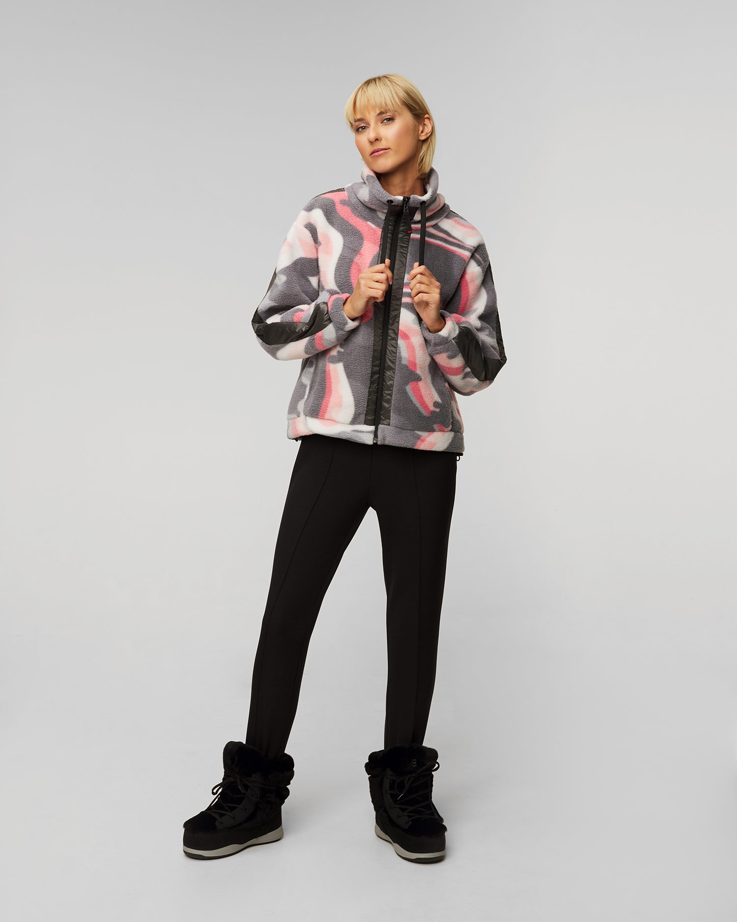 Dámska bunda BOGNER FIRE+ICE Ninetta2 je fleecová stredná vrstva pre ženy s rovným strihom a unikátnym, celoplošným vzorom. Poskytuje nielen teplo, ale aj výnimočný vzhľad. Kontrastné nylonové lemovanie pozdĺž zipsu a rukávov vytvára športový, dynamický vzhľad. Dve bočné vrecká poskytujú praktický úložný priestor a udržujú ruky v teple. Sťahovacia šnúrka na golieri a elastický spodný lem umožňujú prispôsobenie bundy vlastným potrebám a ochranu pred chladom. Nášivka FIRE+ICE na zadnej strane.