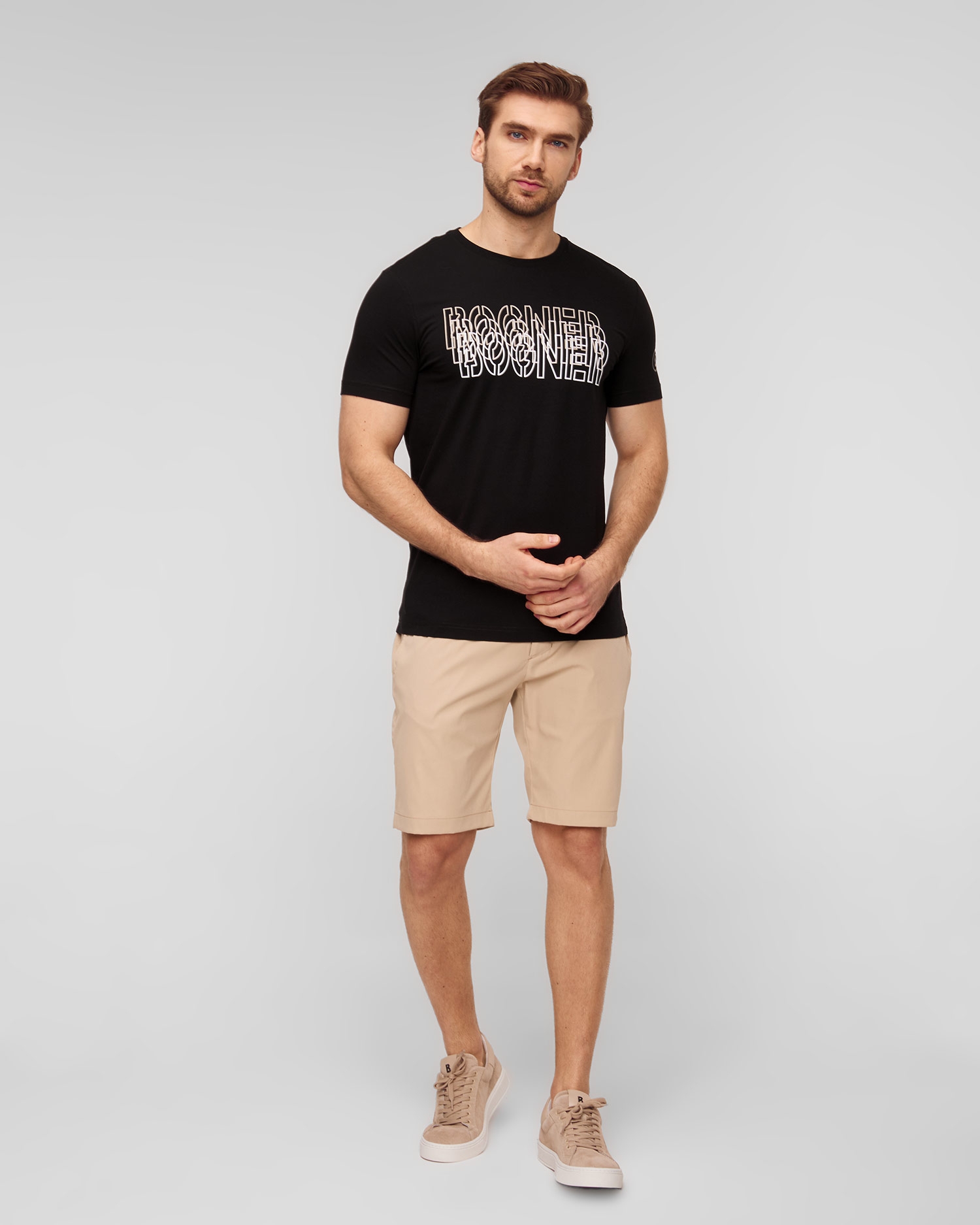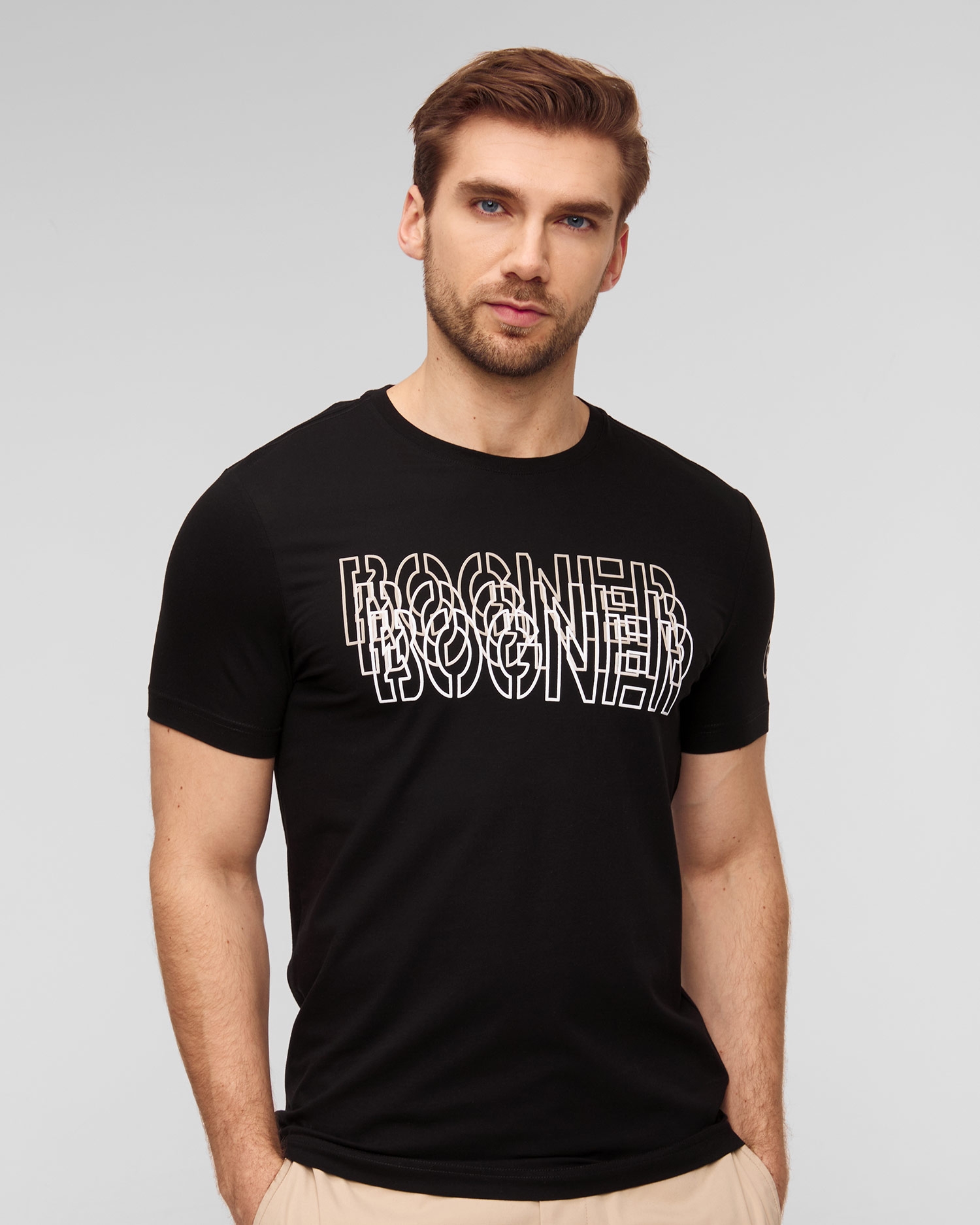 Pánske tričko BOGNER Kane rovného strihu s gradientnou potlačou BOGNER na prednej strane. Vyrobené z kvalitnej a mäkkej bavlny. Prídavok elastanu zvyšuje pružnosť materiálu, zaručuje dokonalé prispôsobenie postave a výbornú voľnosť pohybu. Oválny výstrih s elastickým lemom.
