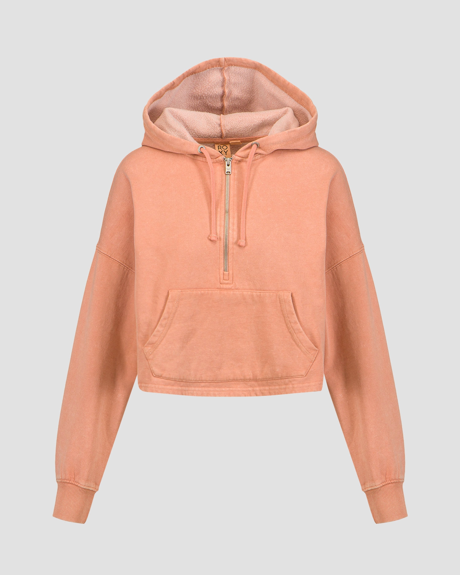 Dámska mikina Roxy je pohodlný model s voľným, krátkym strihom, ktorý si rada oblečieš po surfovaní. Vyrobená zo silnejšej bavlnenej priadze s malým prídavkom polyestru, charakterizujúca sa dlhšou životnosťou a hladšími vláknami. Polovičný zips. Kapucňa nastaviteľná pomocou šnúrok. Rukávy zakončené lemami. Klokanie vrecko na prednej strane.