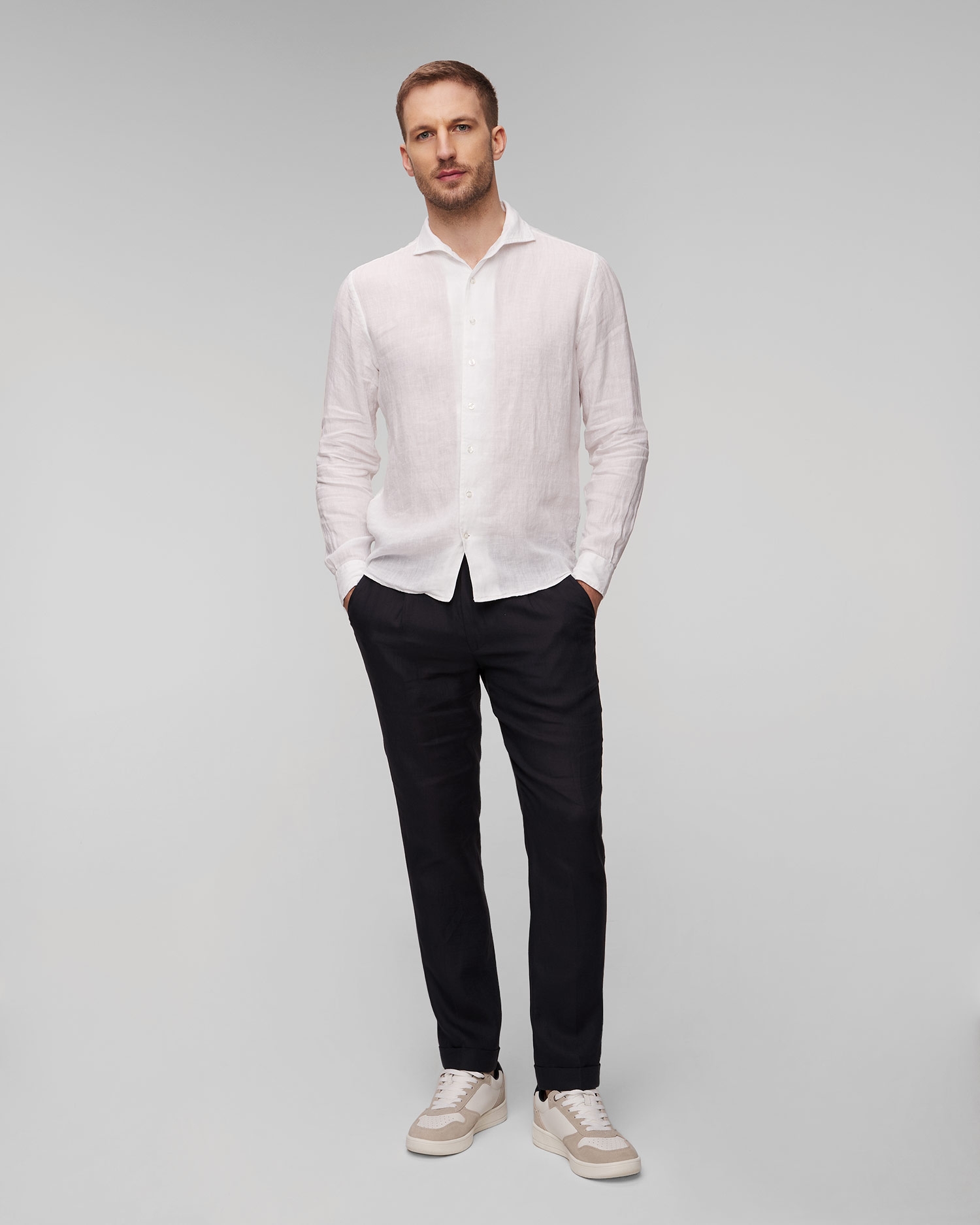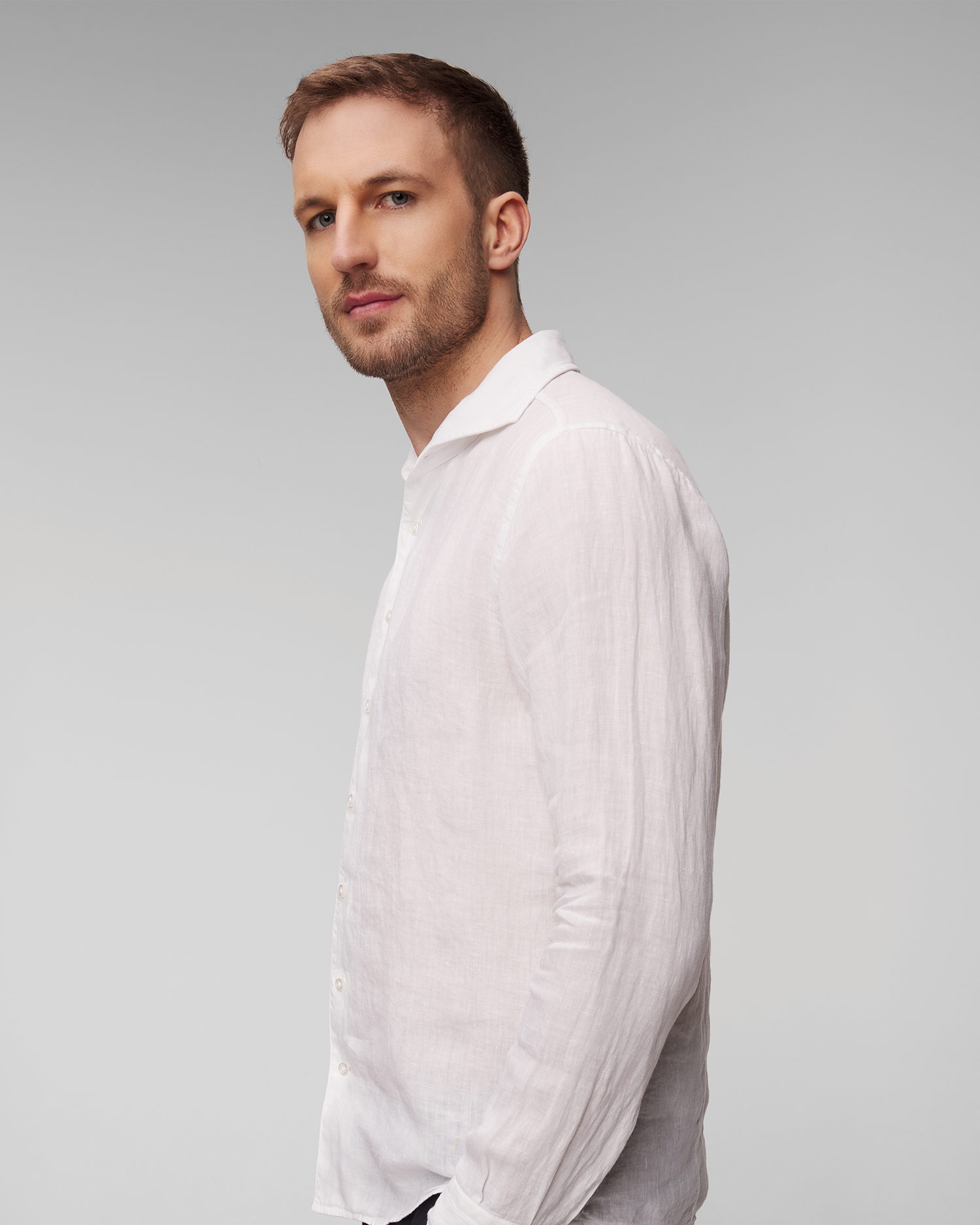 Ľanová košeľa Gran Sasso s nádychom retro charakteru je dokonalou kombináciou všestranného a pohodlného štýlu, ktorý sa hodí k letným, každodenným aj večerným outfitom. Vyrobená z ľanu, ktorý vďaka svojim prirodzeným vlastnostiam prepúšťa vzduch, poskytujúc chladivý pocit, aby ste sa cítili pohodlne a sviežo za každých okolností. Zapínanie na gombíky. Dlhé rukávy zakončené manžetami. Francúzsky golier so široko rozmiestnenými rohmi pôsobí menej formálne. Prešitia na zadnej strane pre lepšie prispôsobenie sa siluete.