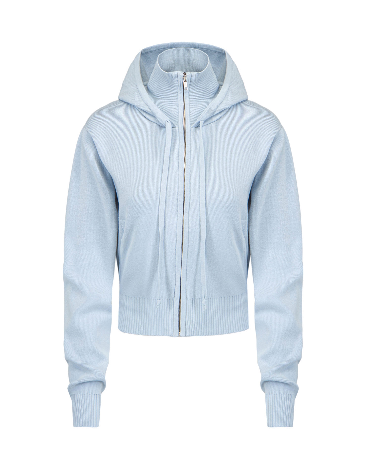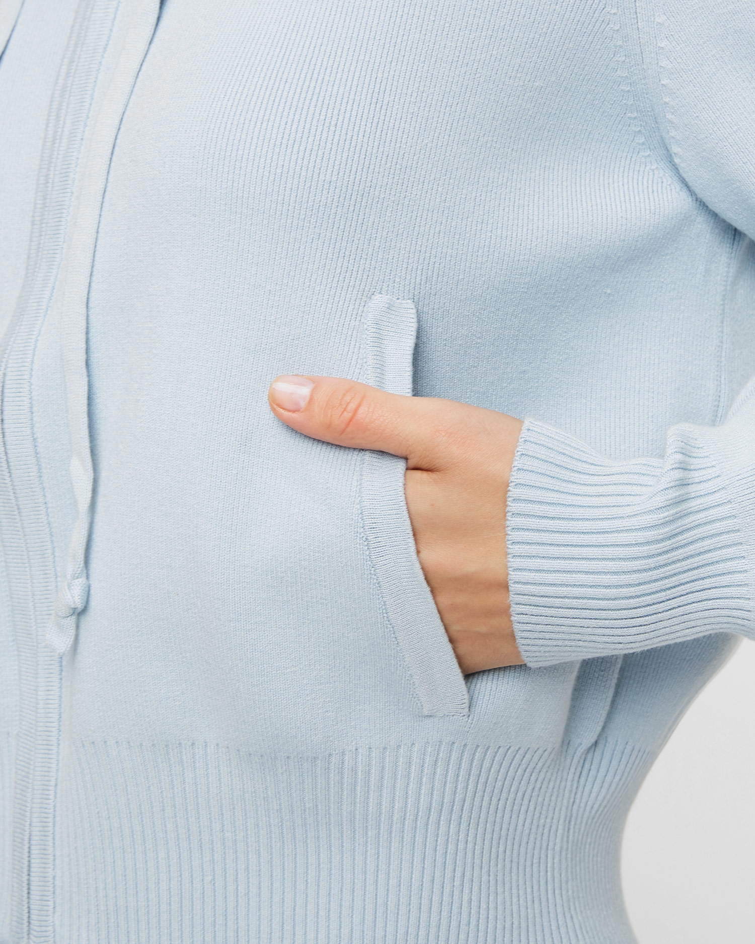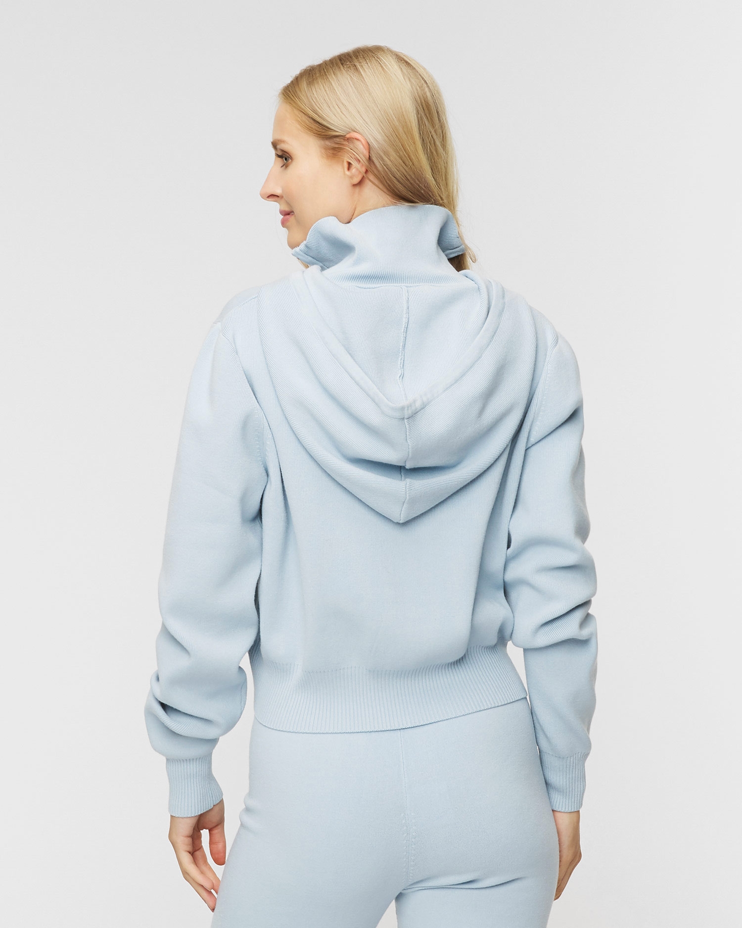Dámska mikina LIVE THE PROCESS v modrej farbe. Mikina je vyrobená z kombinácie materiálov, ktoré zaručujú mimoriadnu priedušnosť a hygroskopickosť, vďaka čomu sa pri nosení mikiny budete cítiť maximálne pohodlne. Materiály sú navyše veľmi pružné a veľmi jemné, čo ešte viac zvýši komfort používania. Vysoký golier, rukávy a dolná časť sú zakončené elastickým rebrovaným lemom. Mikina na zips. Objemná kapucňa, nastaviteľná pomocou šnúrky.